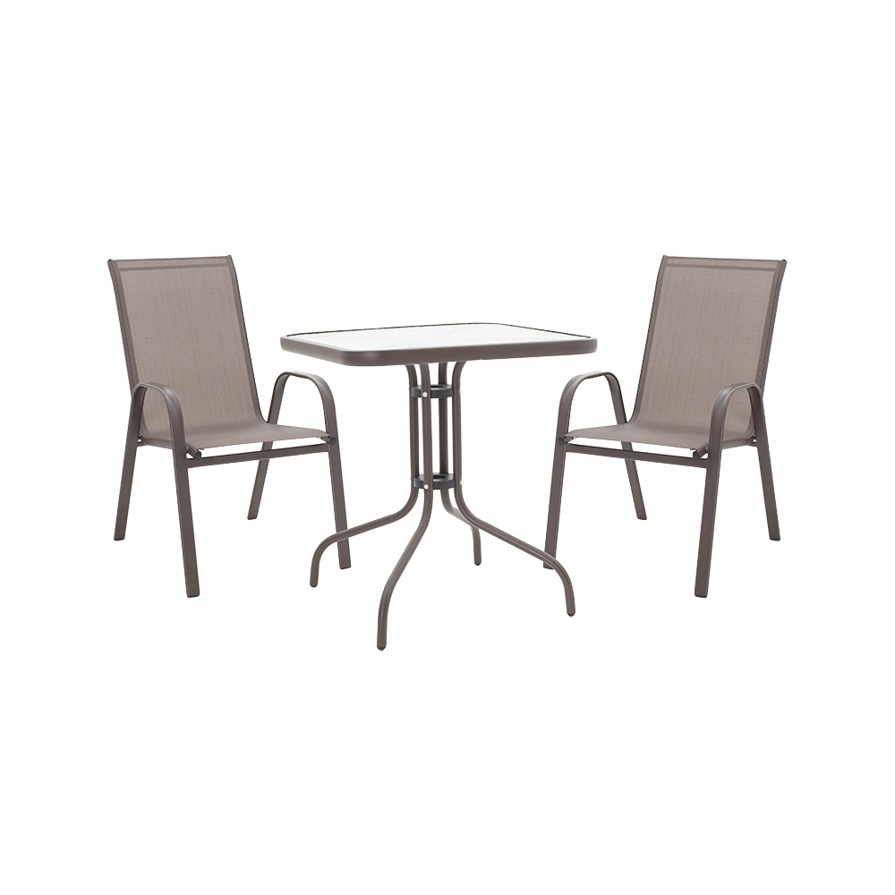 Τραπεζαρία Watson-Calan σετ 3τεμ pakoworld μέταλλο-textilene καφέ 70x70x70εκ