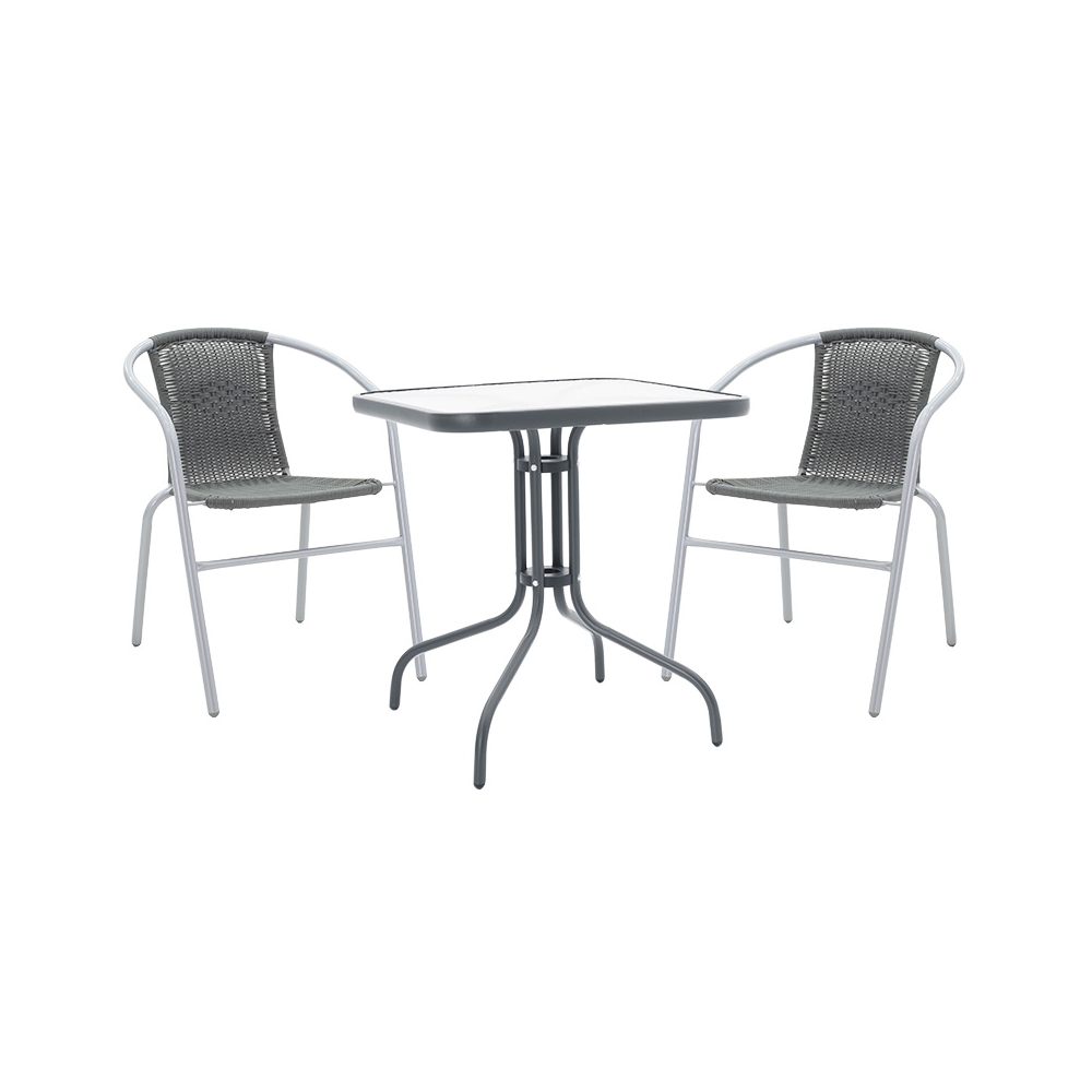 Τραπεζαρία Watson-Obbi σετ 3τεμ pakoworld pe γκρι-μέταλλο γκρι ανθρακί 70x70x70εκ