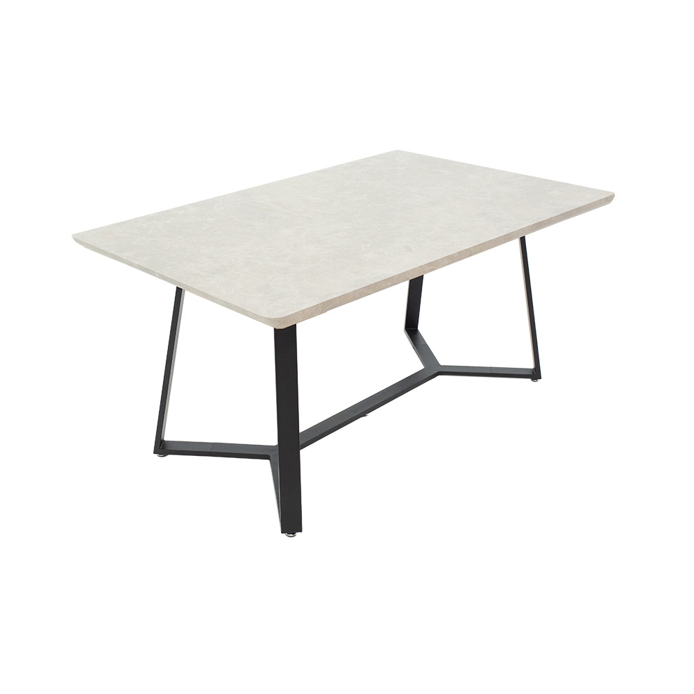 Τεχνικά χαρακτηριστικά: *Επιφάνεια κατασκευασμένη από μοριοσανίδα με επένδυση Paper Wood χρώματος γκρι μαρμάρου υψηλής ποιότητας με ανθεκτικότητα στον χρόνο. *Στήριξη σε μία εντυπωσιακή μοντέρνα μεταλλική βάση ηλεκτροστατικής βαφής μαύρου χρώματος που το αναδεικνύει *Τα πόδια καταλήγουν σε ρεγουλατώρους προσαρμόσιμους για κάθε δάπεδο. * Για τον καθαρισμό της επιφάνειας αρκεί ένα ξεσκόνισμα με πανάκι ή ήπιο καθαριστικό ενώ καλό είναι να αποφεύγεται η παραμονή υγρών στοιχείων στην επιφάνεια.