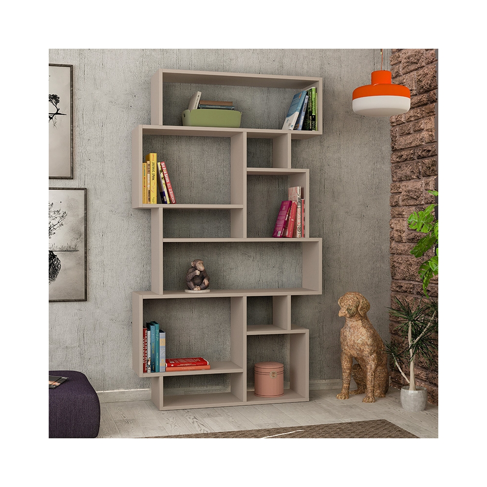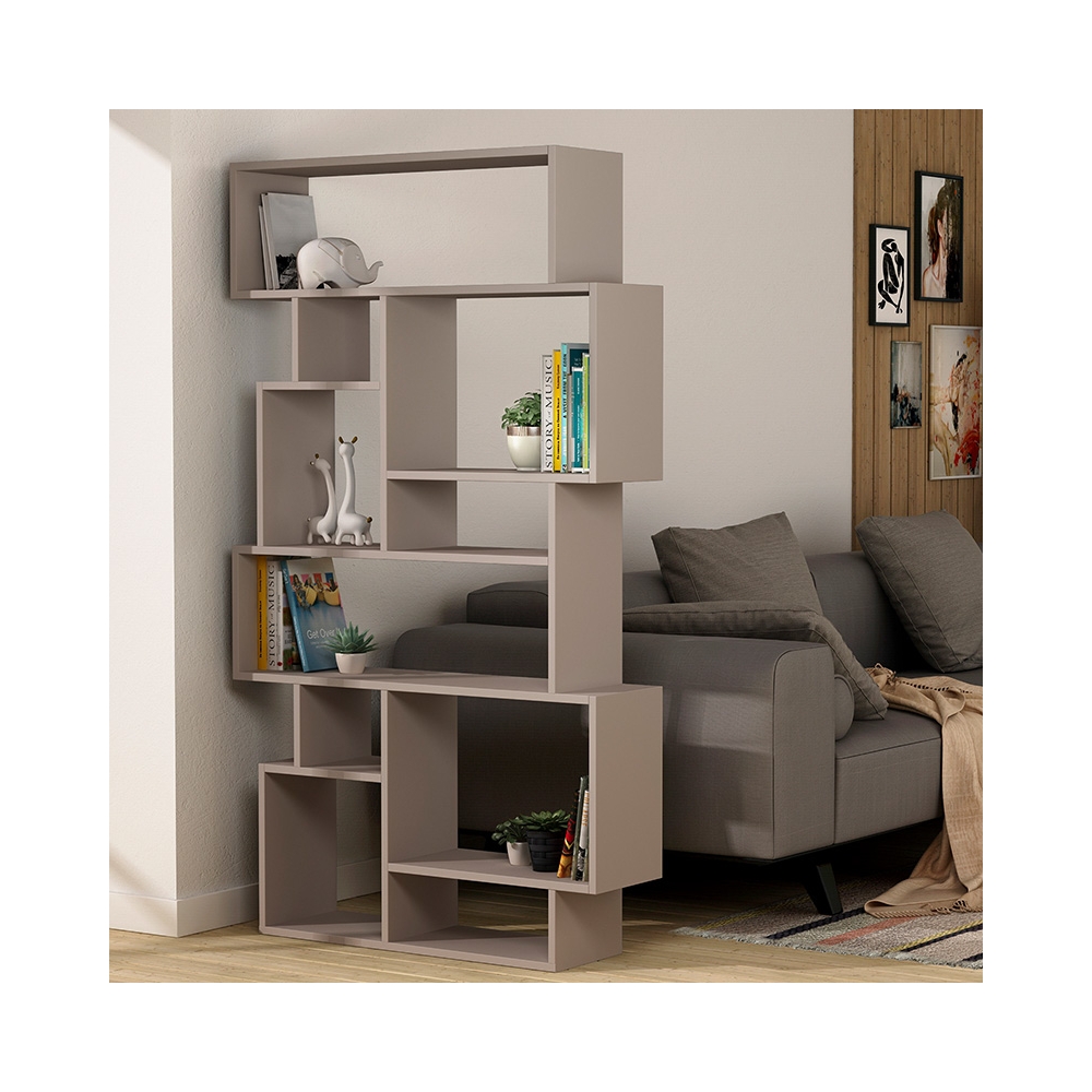 Τεχνικά χαρακτηριστικά: * Κατασκευασμένη από μοριοσανίδα υψηλής ποιότητας με επένδυση μελαμίνης, με αντοχή στην καταπόνηση και στον χρόνο. Προσφέρεται σε μόκα χρώμα. * Σχεδιασμένη με την μορφή επάλληλων τετραγώνων προσφέρεται να φιλοξενήσει διακοσμητικά και αντικείμενα διαφορετικού ύψους καθώς διαθέτει τους ανάλογους χώρους. * Ιδανική να λειτουργήσει και ως οπτικό διαχωριστικό στον χώρο σας