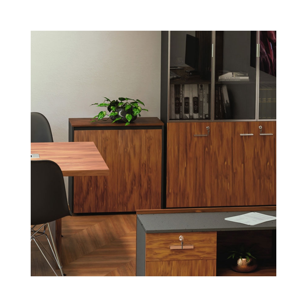 Ντουλάπι γραφείου χαμηλό επαγγελματικό Oscar pakoworld καρυδί-ανθρακί 80x40x80εκ
