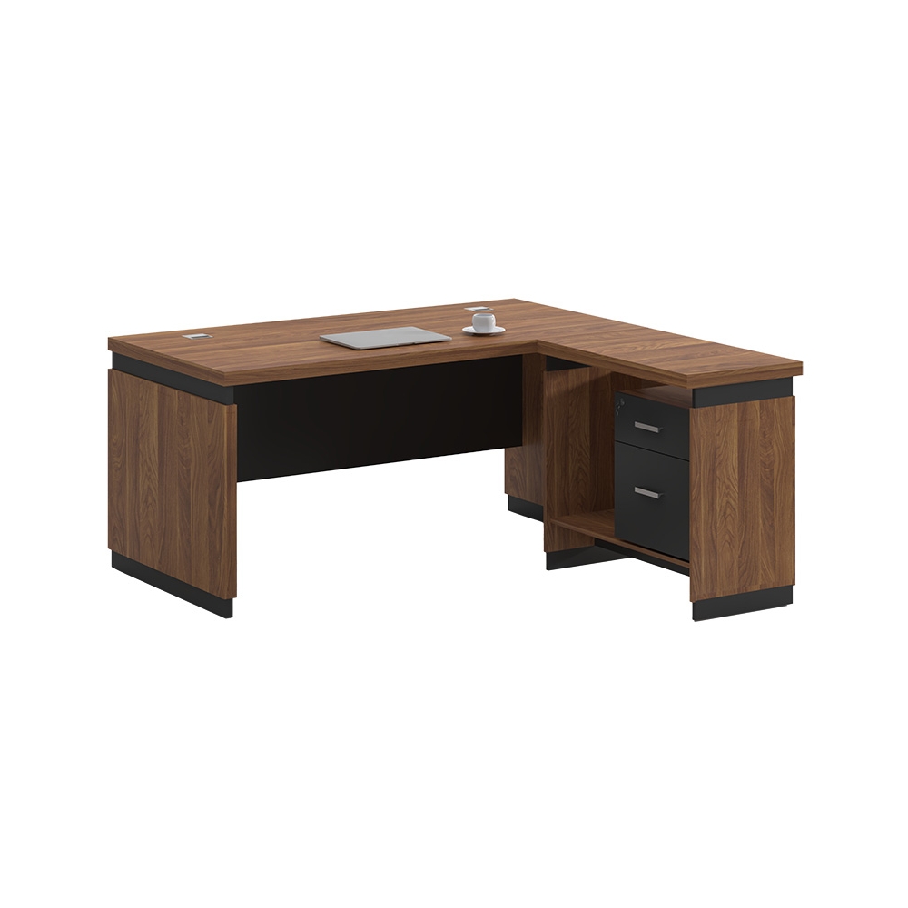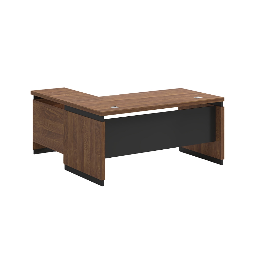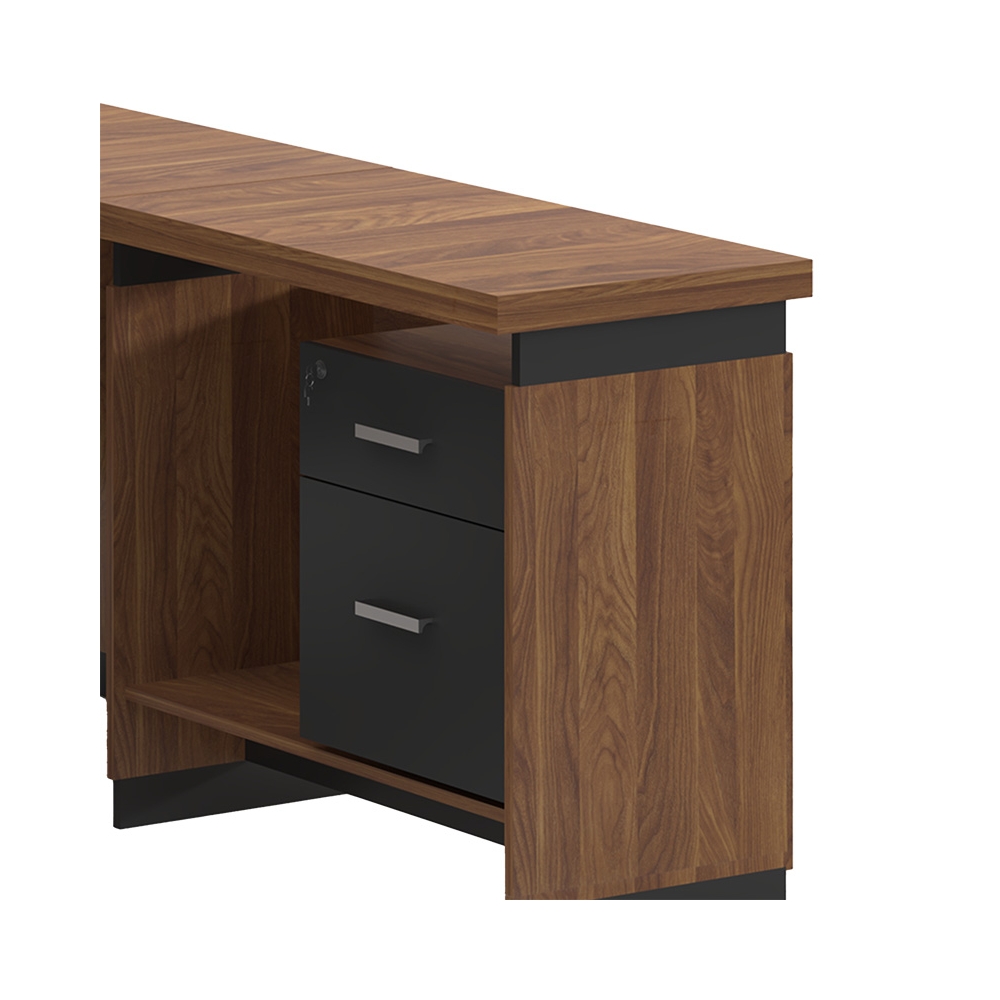Γραφείο διεύθυνσης αναστρέψιμο (τοποθετείτε σε όποια πλευρά θέλετε), στον εντυπωσιακό χρωματισμό του καρυδί - ανθρακί. Κατασκευασμένο από υλικά υψηλών προδιαγραφών και σύμφωνα με τις εργονομικές απαιτήσεις του σήμερα.