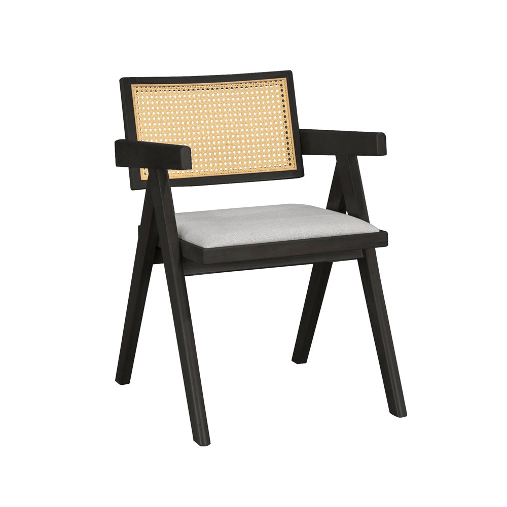 Πολυθρόνα Winslow pakoworld ξύλο rubberwood μαύρο-pvc rattan φυσικό-ύφασμα γκρι Pakoworld 247-000005