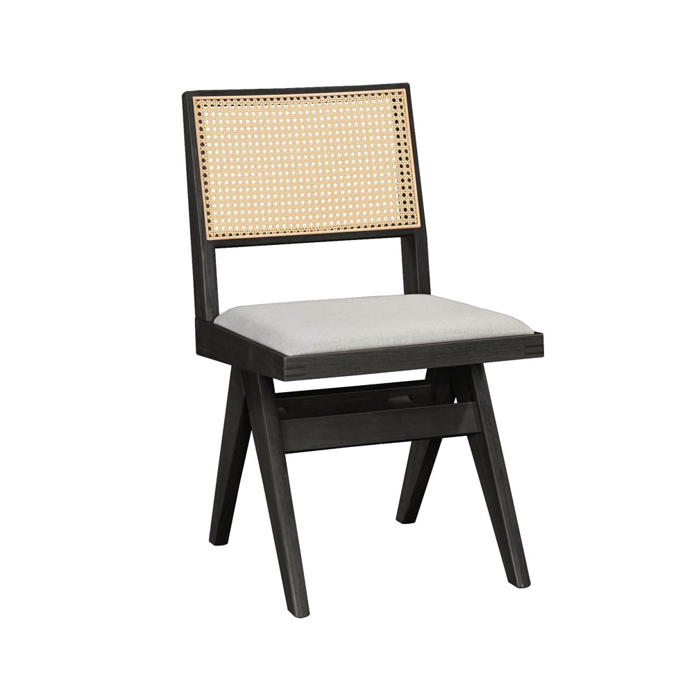 Καρέκλα Winslow pakoworld ξύλο rubberwood μαύρο-pvc rattan φυσικό-ύφασμα γκρι