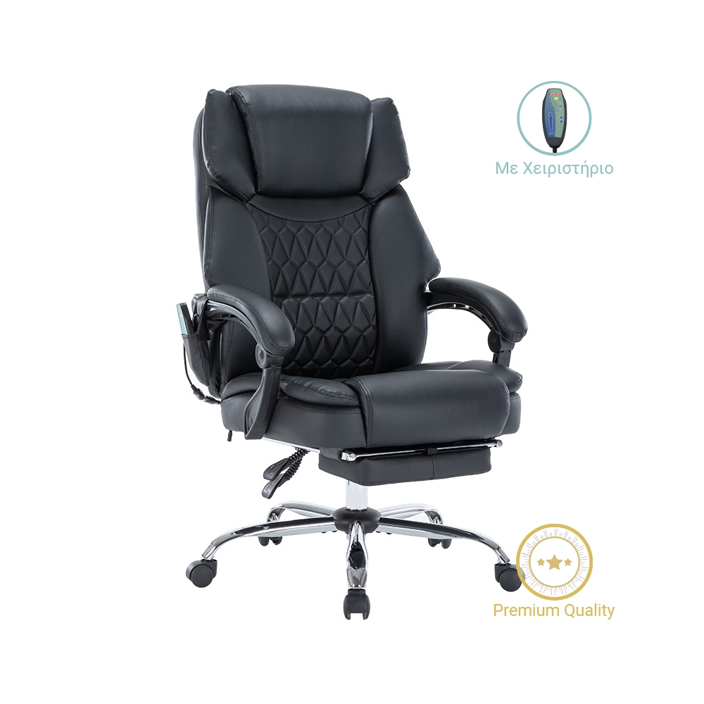 Καρέκλα γραφείου διευθυντή Thrive pakoworld Premium Quality μηχανισμός massage-θερμαινόμενη πλάτη pu μαύρο