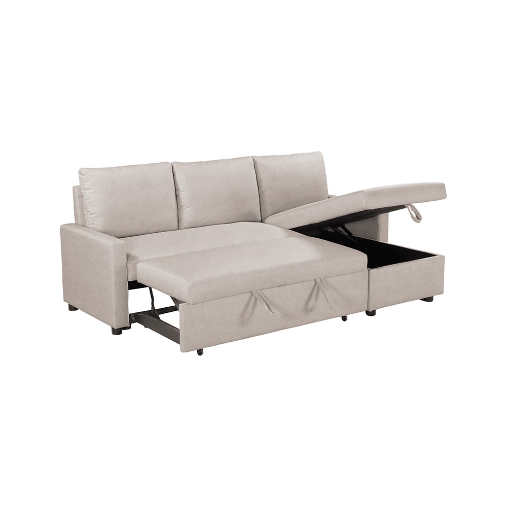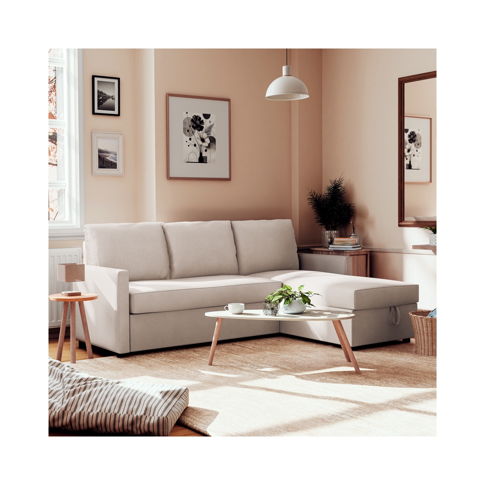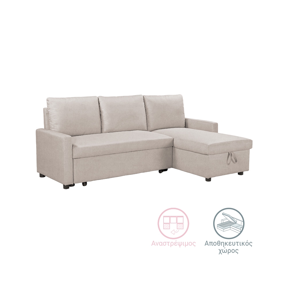 Γωνιακός καναπές αναστρέψιμος κρεβάτι Infuse pakoworld με αποθηκευτικό χώρο μπεζ ύφασμα 203x130x88εκ
