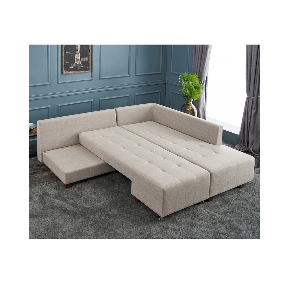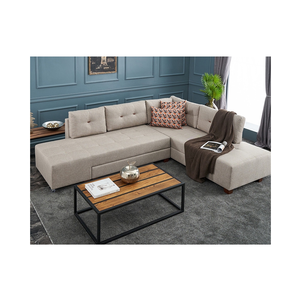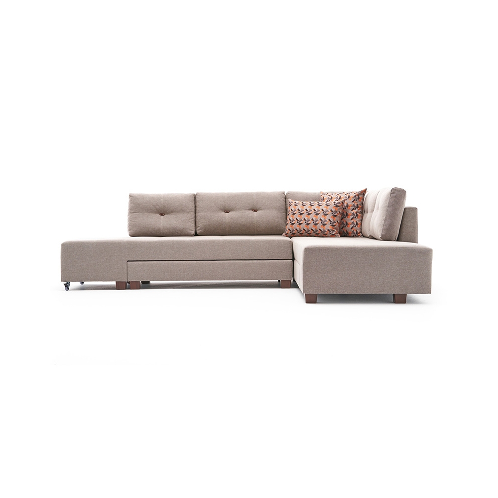 Γωνιακός καναπές κρεβάτι PWF-0517 pakoworld αριστερή γωνία ύφασμα κρεμ-καρυδί 282x206x85εκ