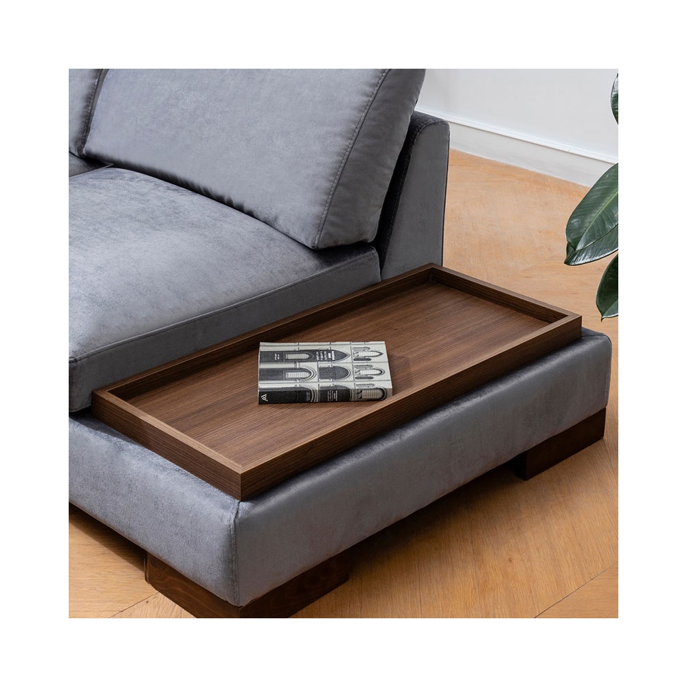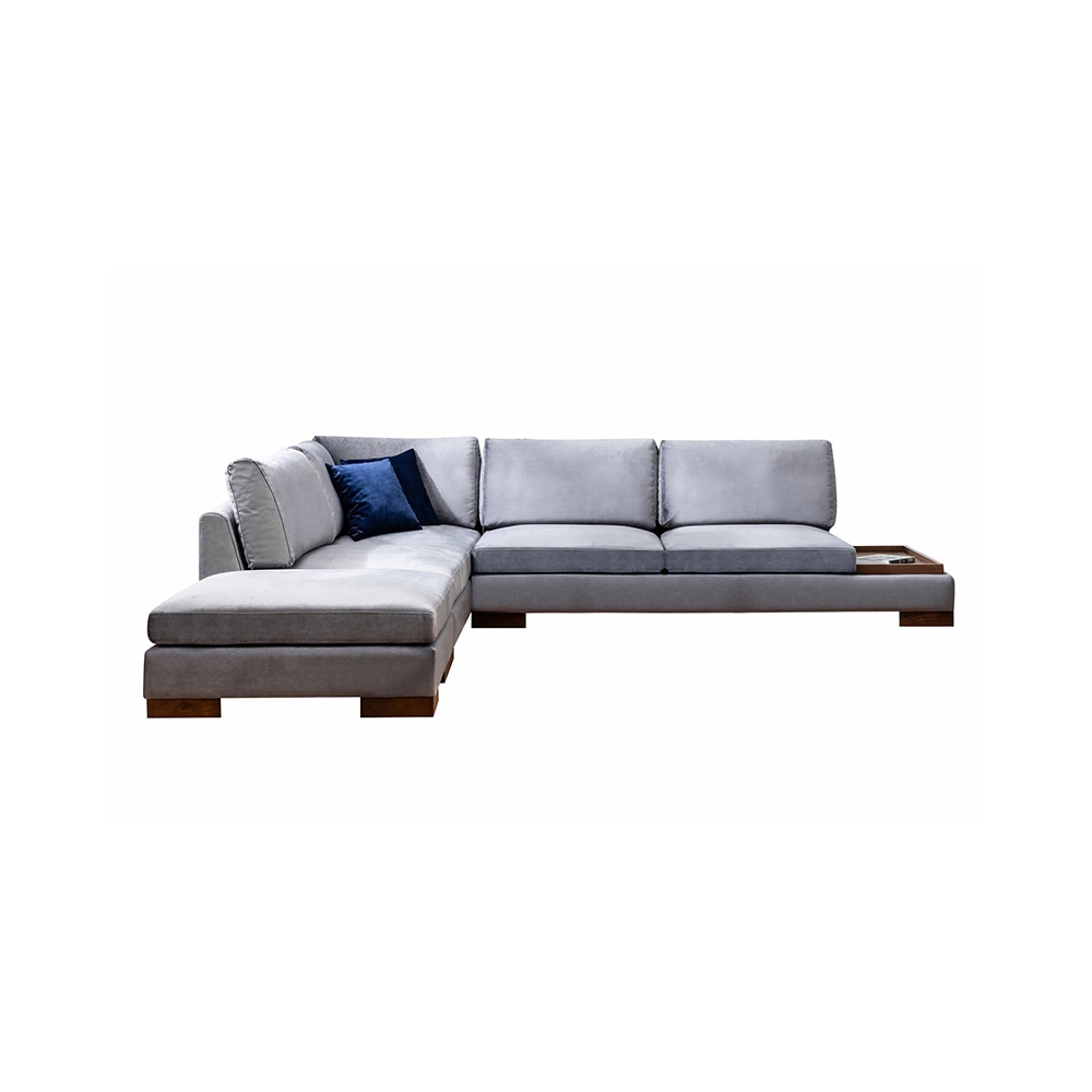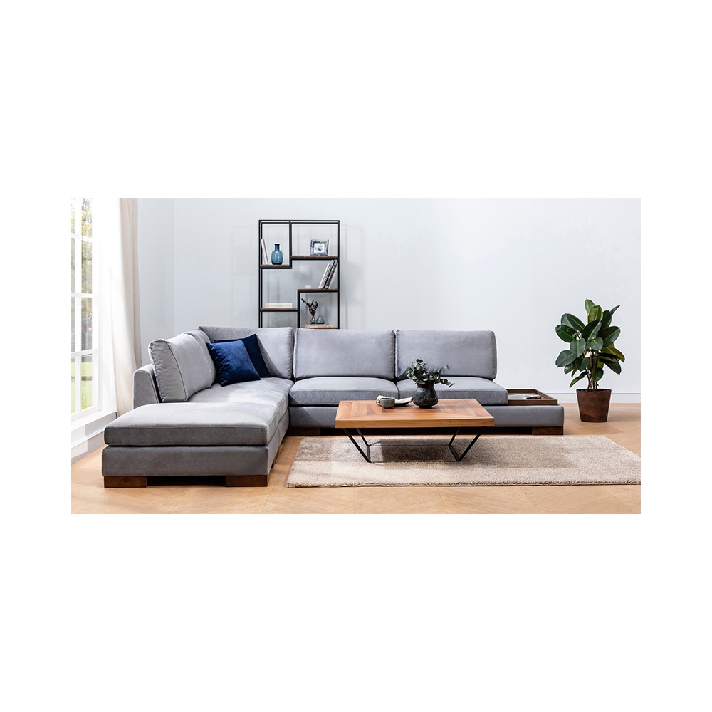 Γωνιακός καναπές PWF-0520 pakoworld δεξιά γωνία βελούδο γκρι-καρυδί 313x193x80εκ