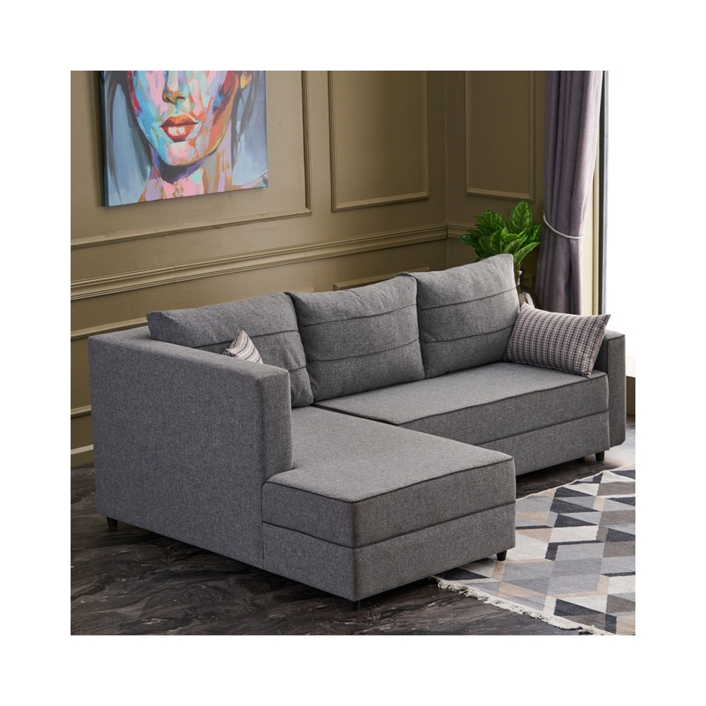 Γωνιακός καναπές κρεβάτι PWF-0524 pakoworld δεξιά γωνία ύφασμα γκρι-καρυδί 242x160x88εκ