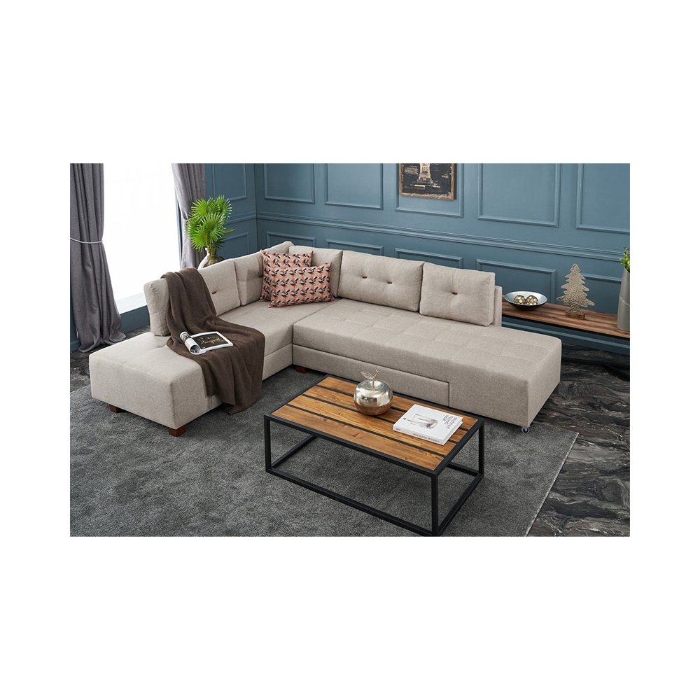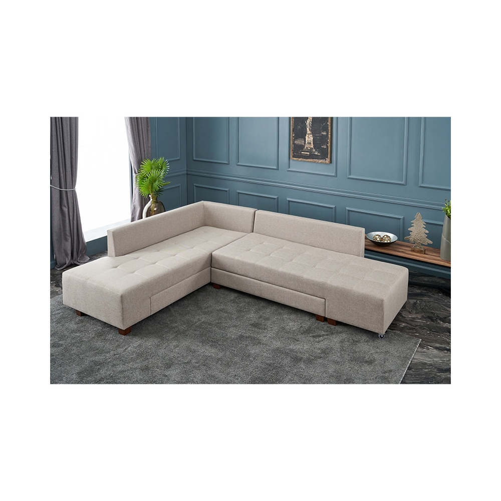 Γωνιακός καναπές κρεβάτι PWF-0517 pakoworld δεξιά γωνία ύφασμα κρεμ-καρυδί 282x206x85εκ