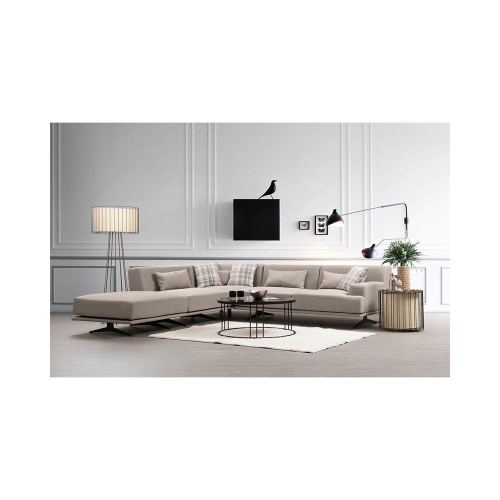 Γωνιακός καναπές PWF-0516 pakoworld δεξιά γωνία ύφασμα μπεζ-μαύρο 302x302x80εκ