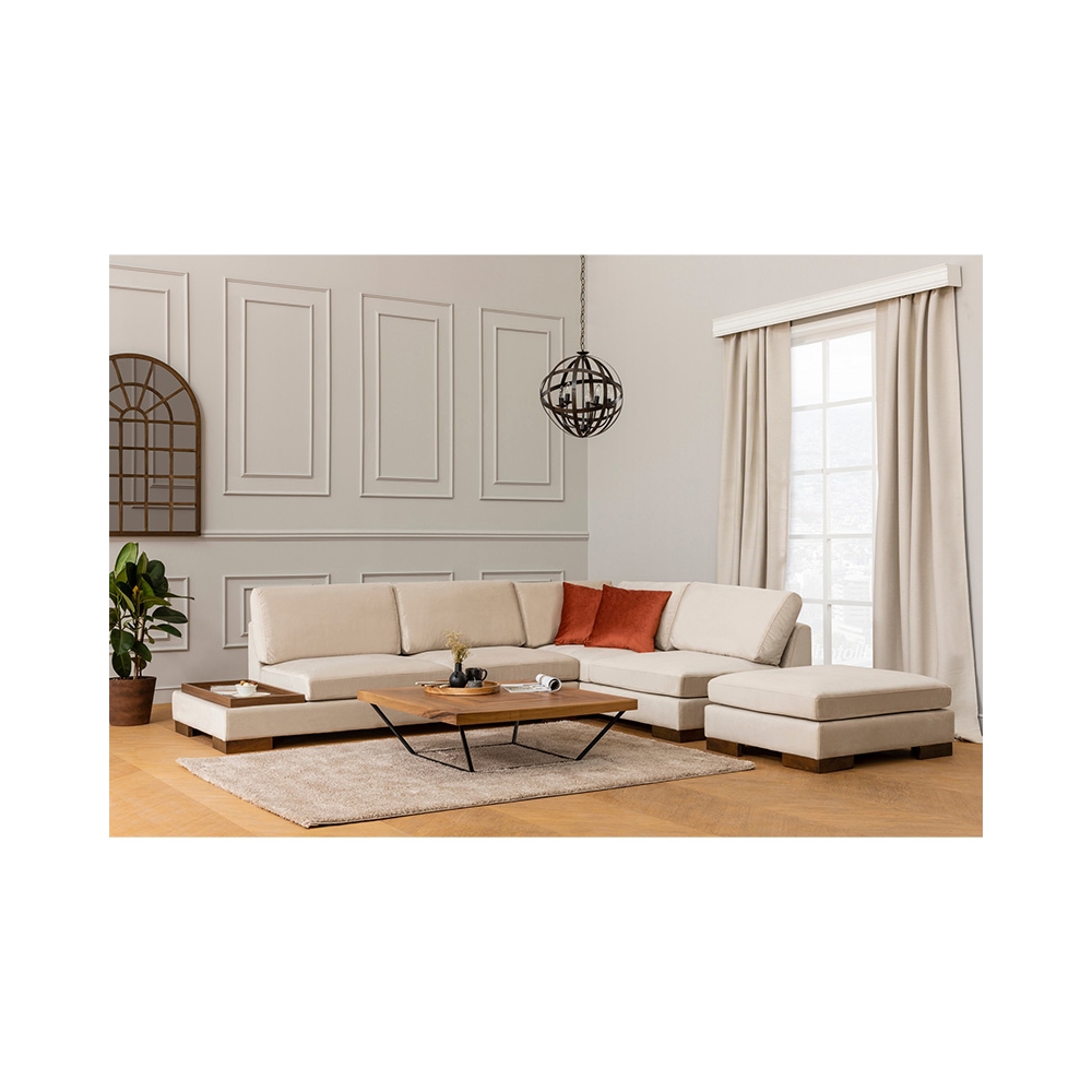 Γωνιακός καναπές PWF-0506 pakoworld αριστερή γωνία με πουφ ύφασμα μπεζ-καρυδί 313x193x80εκ