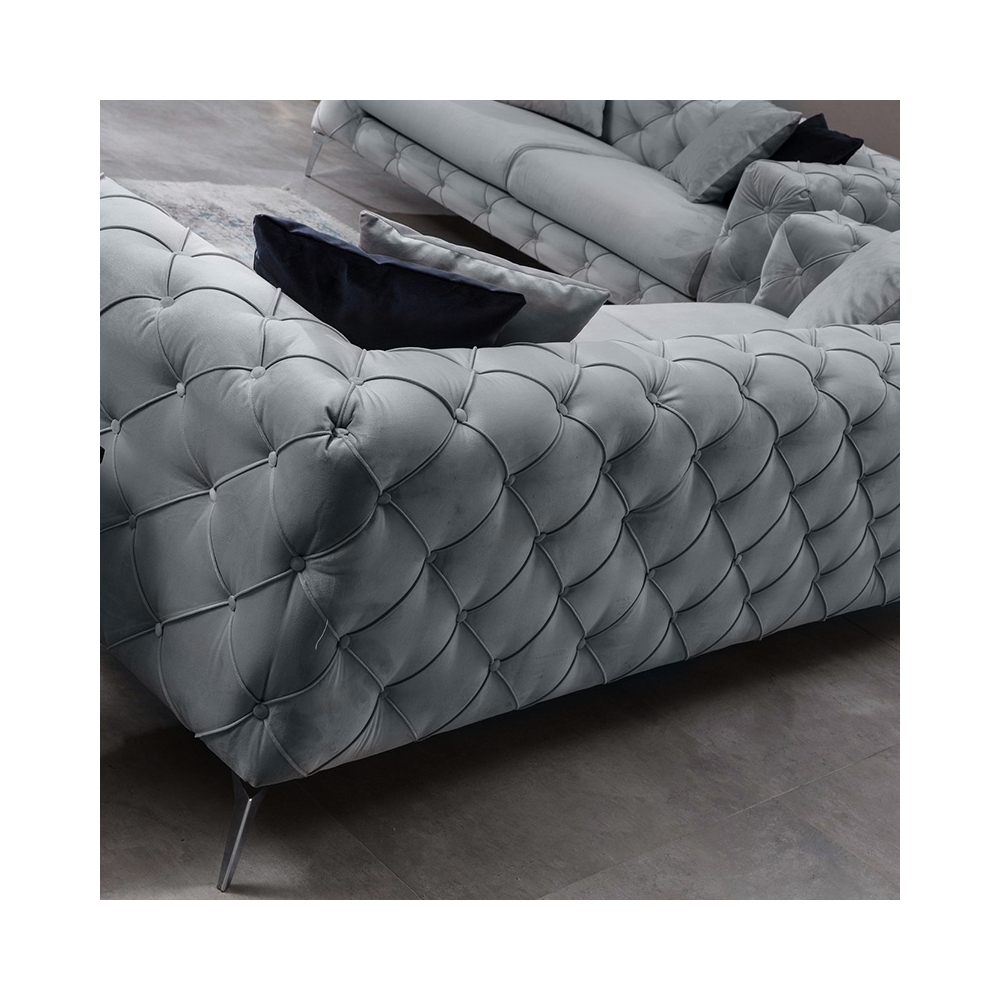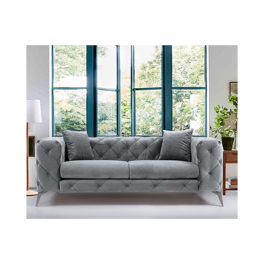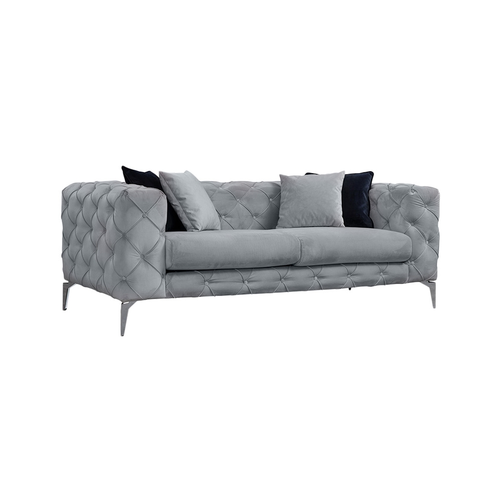 Καναπές 2θέσιος PWF-0502 pakoworld βελούδο γκρι-χρώμιο 197x90x73εκ
