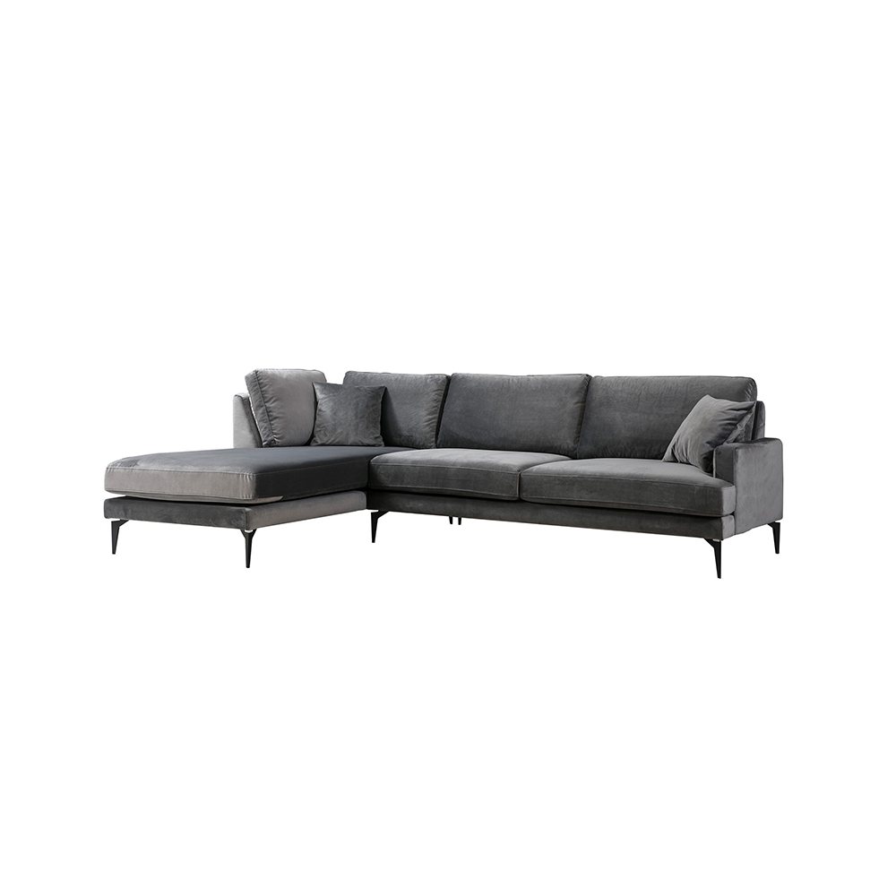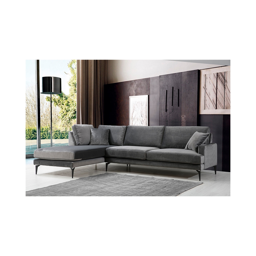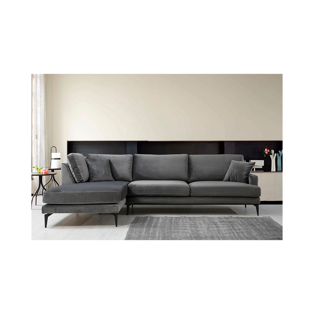 Γωνιακός καναπές Fortune pakoworld δεξιά γωνία βελούδο ανθρακί-μαύρο 283x180x88εκ