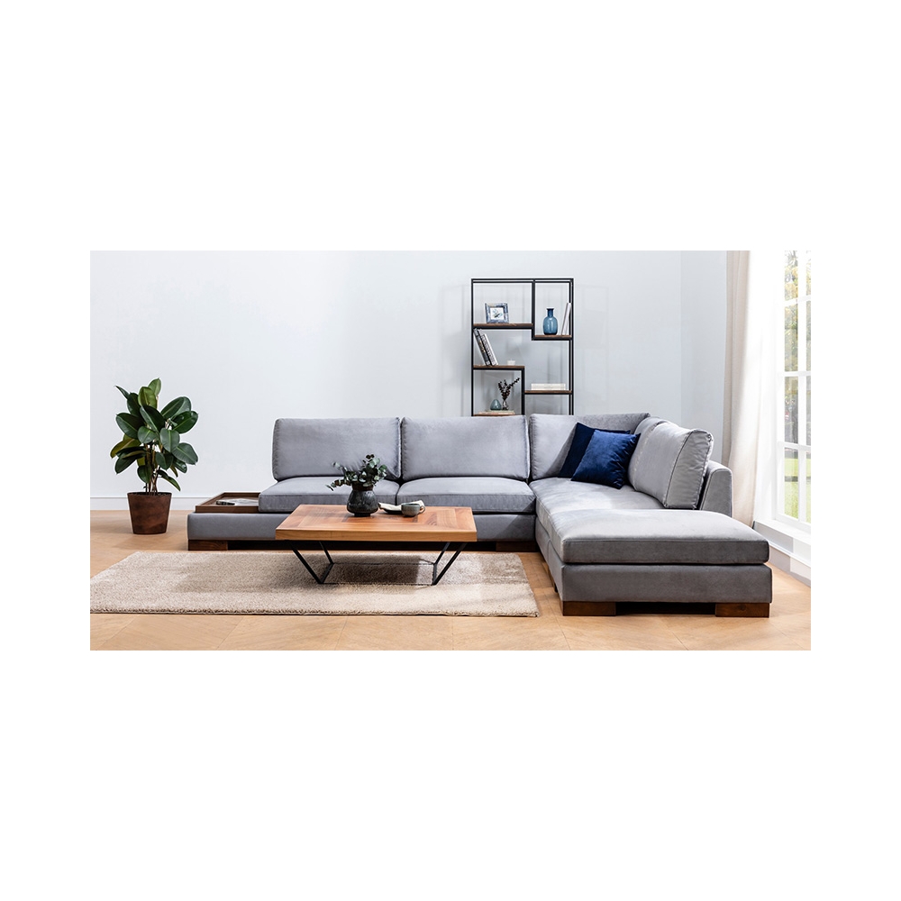 Γωνιακός καναπές PWF-0506 pakoworld αριστερή γωνία ύφασμα σκούρο γκρι-καρυδί 313x193x80εκ