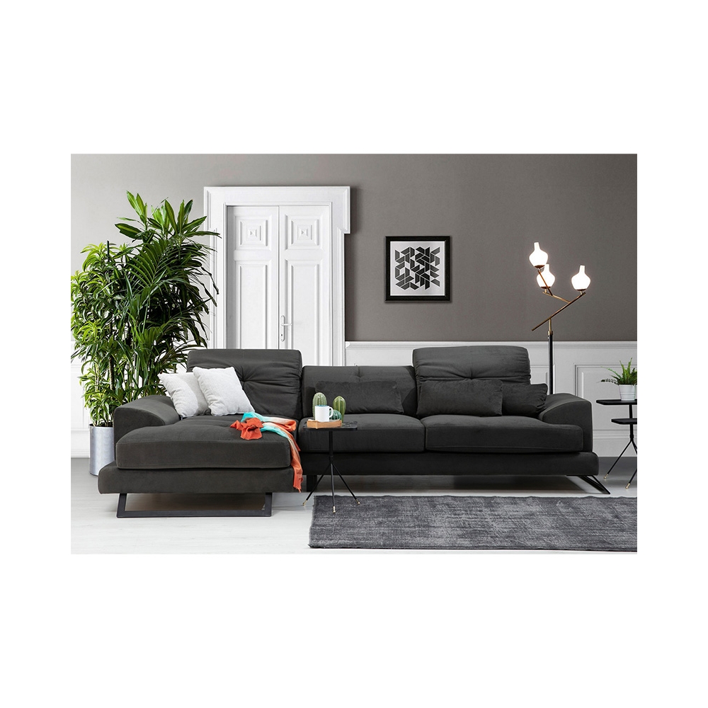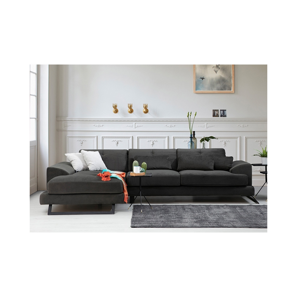 Γωνιακός καναπές PWF-0503 pakoworld δεξιά γωνία βελούδο ανθρακί-μαύρο 308x190x100/92εκ
