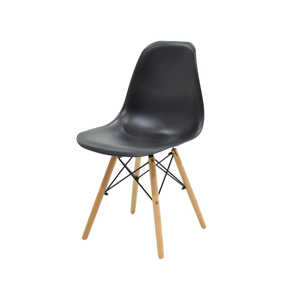 Τεχνικά χαρακτηριστικά καρέκλας: •Πλάτη και έδρα ενιαία κατασκευασμένη από πολυπροπυλένιο (PP) 1900g/m³ (100% ανακυκλώσιμο υλικό) με μεγάλη ανθεκτικότητα στην αντοχή και στη φθορά. •Ο σχεδιασμός της στηρίζει την μέση και την σπονδυλική στήλη. Προσφέρεται σε μαύρο χρώμα. •Στήριξη σε 4 ενισχυμένα ξύλινα πόδια οξιάς, ενοποιημένα με μαύρους μεταλλικούς βραχίονες, εξαιρετικής ποιότητας και αντοχής στο βάρος όσο και στο χρόνο. •Οι καταλήξεις των ποδιών διαθέτουν προστατευτικά πλαστικά καλύμματα για την προστασία του πατώματος από ανεπιθύμητες φθορές.