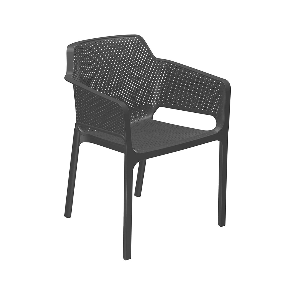 Τεχνικά χαρακτηριστικά πολυθρόνας: * Κατασκευή από εξαιρετικής ποιότητας διάτρητο πολυπροπυλένιο (PP). * Ανθεκτικότητα: Το πολυπροπυλένιο είναι υλικό με μεγάλη αντοχή στις συνθήκες του εξωτερικού περιβάλλοντος (έκθεση σε υγρασία, αέρα κτλ). Μπορεί να καθαριστεί εύκολα με ένα υγρό πανί ή τρεχούμενο νερό, ενώ είναι ένα ανακυκλώσιμο υλικό φιλικό προς το περιβάλλον. * Φέρει ενισχυμένο φίλτρο ηλιοπροστασίας UV για πολύωρη έκθεση στον ήλιο και σε εξωτερικές συνθήκες. * Στιβαζόμενη: Προσφέρει ευκολία στη μεταφορά και στην αποθήκευση. Που το καθιστά ιδανικό για catering και επαγγελματικούς χώρους. * Προσφέρεται σε ανθρακί χρώμα Διαστάσεις προϊόντος: Μήκος: 59 εκ Πλάτος: 59 εκ Ύψος: 80 εκ Ύψος έδρας: 46 εκ