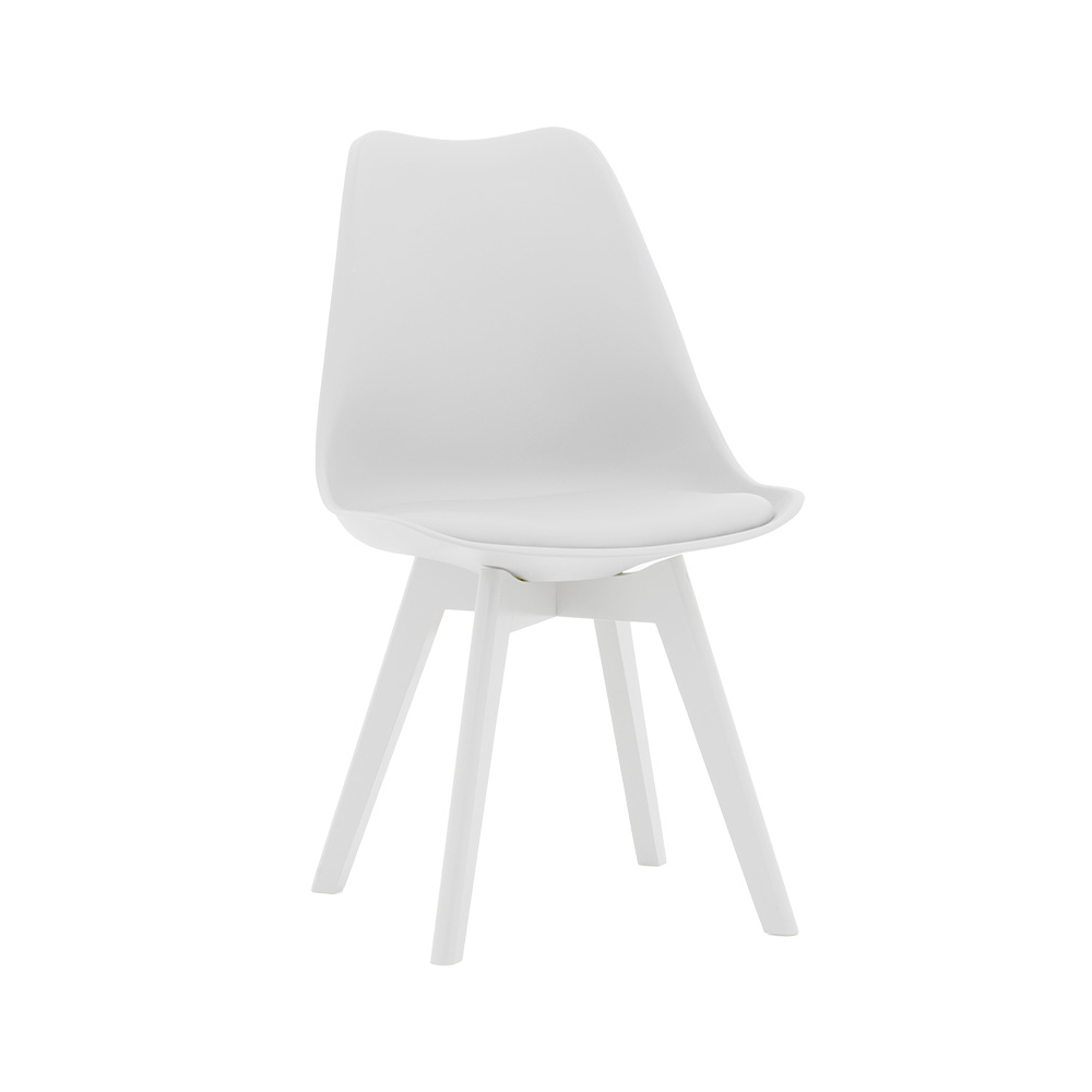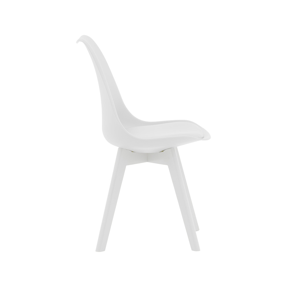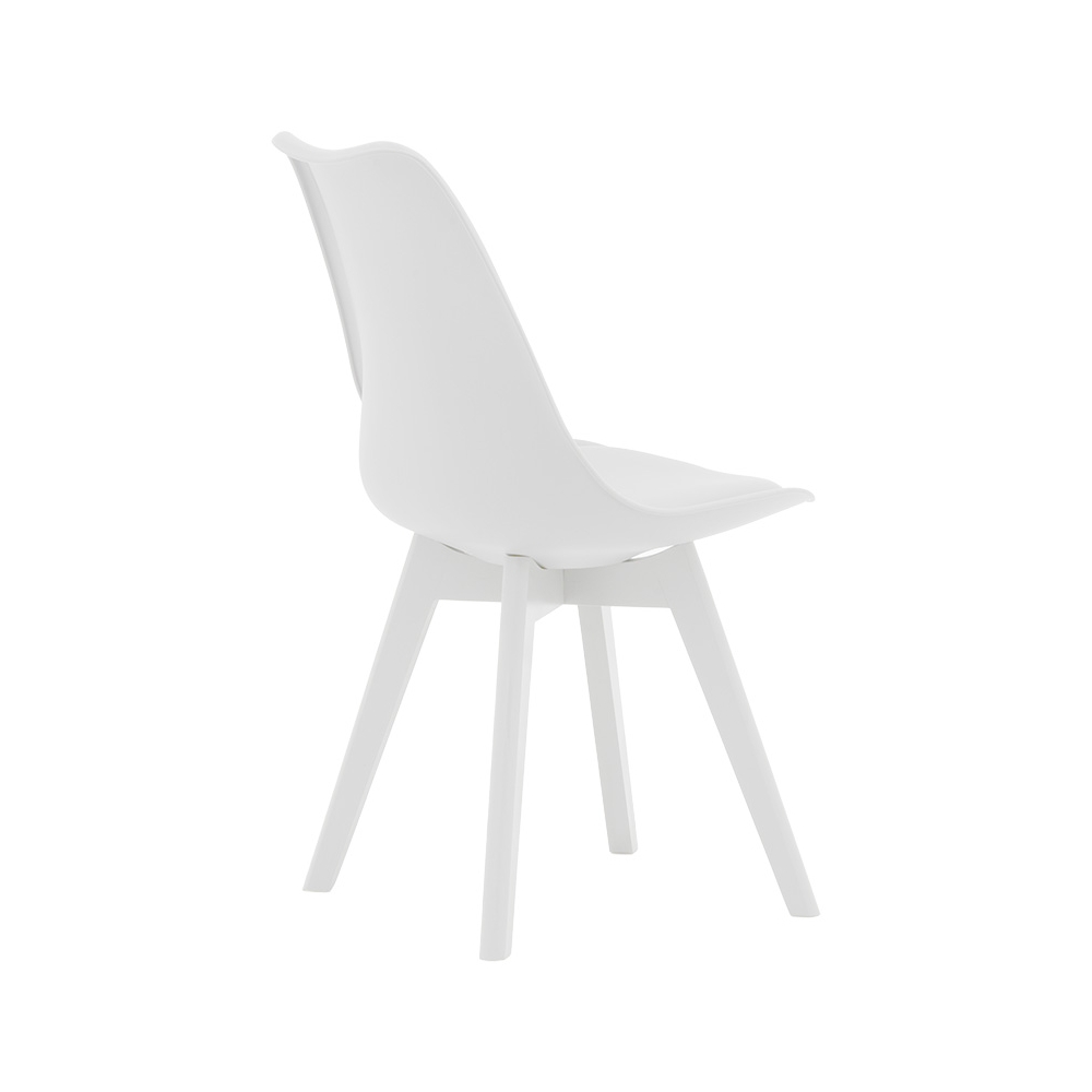 Τεχνικά χαρακτηριστικά: * Πλάτη κατασκευασμένη από πολυπροπυλένιο 2800g/m³, με μεγάλη ανθεκτικότητα και αντοχές στη φθορά. Ακολουθεί την σπονδυλική στήλη στηρίζοντας τη μέση με καμπύλο τελείωμα στη κορυφή, προσφέρεται σε λευκό χρώμα. * Επένδυση βάσης με τεχνόδερμα Pu υψηλής ποιότητας που παρέχει ανθεκτικότητα αλλά και την δυνατότητα του εύκολου καθαρισμού. Προσφέρεται σε λευκό χρώμα. * Στήριξη σε ξύλινη βάση που καταλήγει σε 4 πόδια σε λευκό χρώμα, εξαιρετικής ποιότητας και αντοχής στο βάρος και στο χρόνο. * Οι καταλήξεις των ποδιών διαθέτουν προστατευτικά πλαστικά καλύμματα για την προστασία του πατώματος από ανεπιθύμητες φθορές.