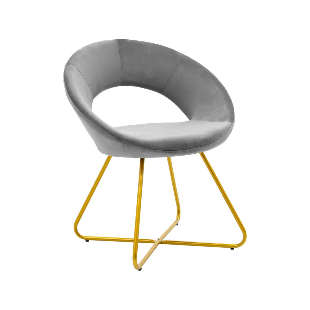 Τεχνικά χαρακτηριστικά: *Μαξιλάρι κατασκευασμένο με foam για μεγαλύτερη ελαστικότητα, ανθεκτικότητα και αντοχή στον χρόνο. *Η καμπύλη πλάτη αγκαλιάζει και ακολουθεί την σπονδυλική στήλη στηρίζοντας τη μέση *Επένδυση με βελούδο καλής ποιότητας με μεγάλη αντοχή στη τριβή και στη φθορά, χρώμα: γκρι *Στήριξη σε ενισχυμένη μεταλλική βάση σε χρυσό χρώμα.