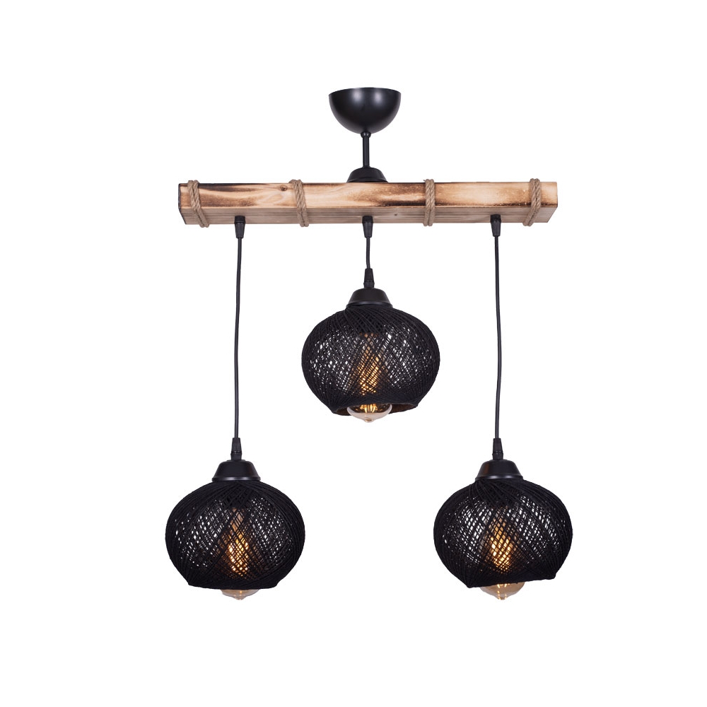 Φωτιστικό οροφής τρίφωτο Fiona I pakoworld Ε27 μαύρο-φυσικό 50x20x63εκ