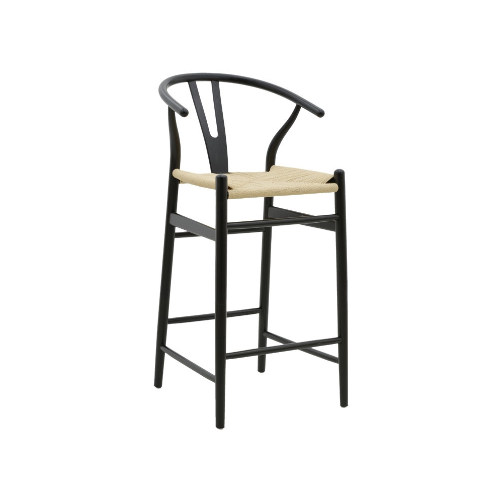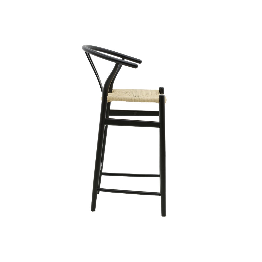 Σκαμπό μπαρ Wishbone pakoworld ξύλο οξιάς μαύρο-έδρα φυσικό σχοινί 53x54x107εκ Pakoworld 263-000004