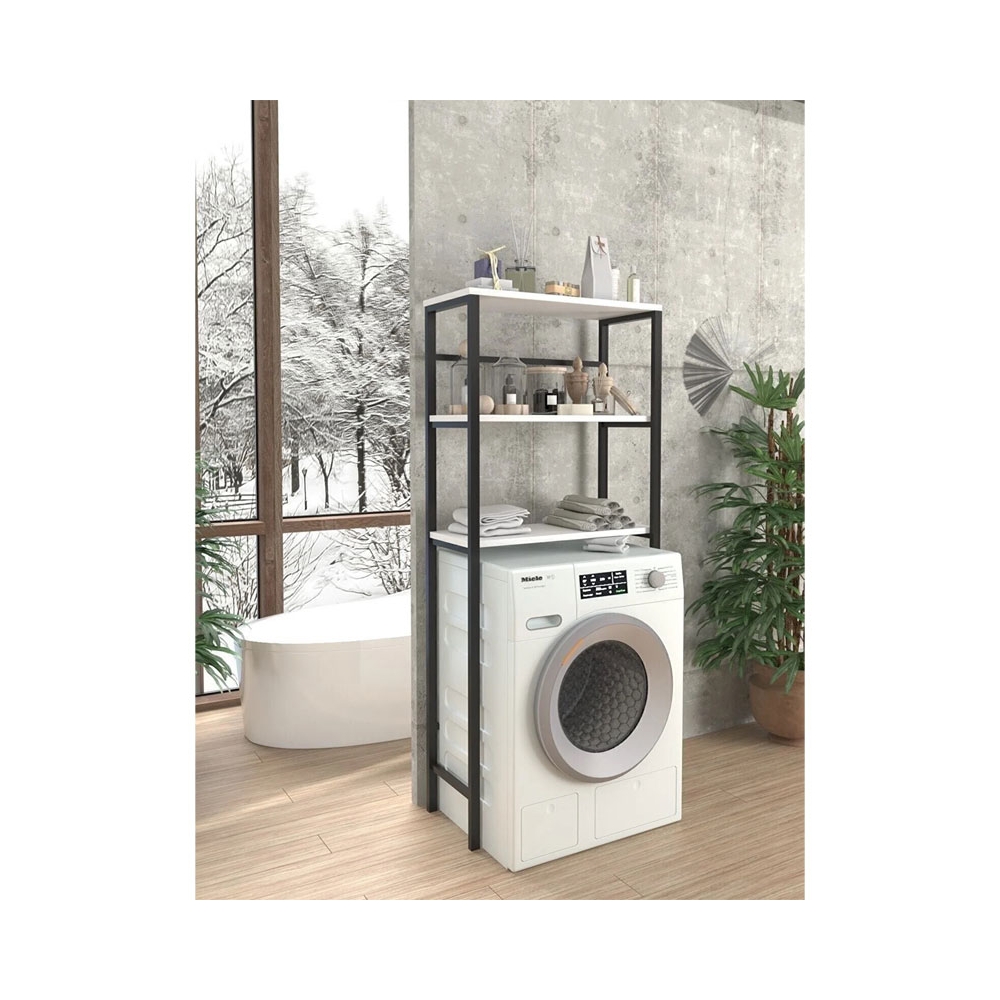 Έπιπλο πλυντηρίου Zermin pakoworld μελαμίνης-μεταλλικό λευκό-μαύρο 70x25x150εκ
