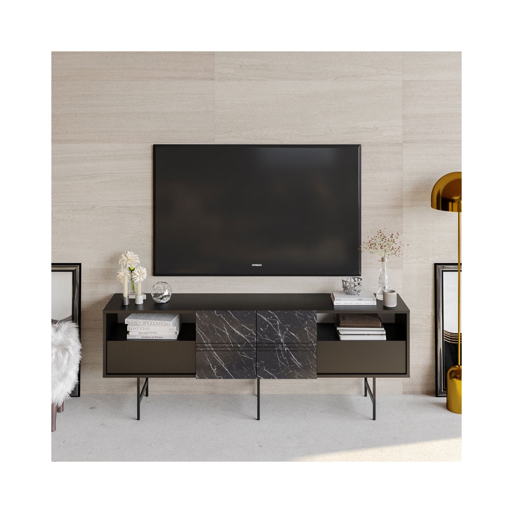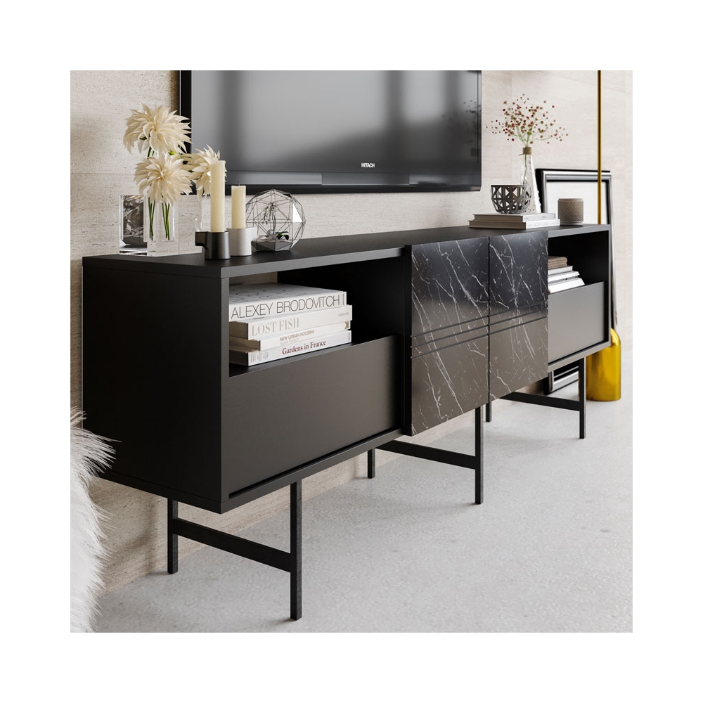 Μπουφές Kevan pakoworld μαύρο μαρμάρου-μαύρο πόδι 180x35x65εκ