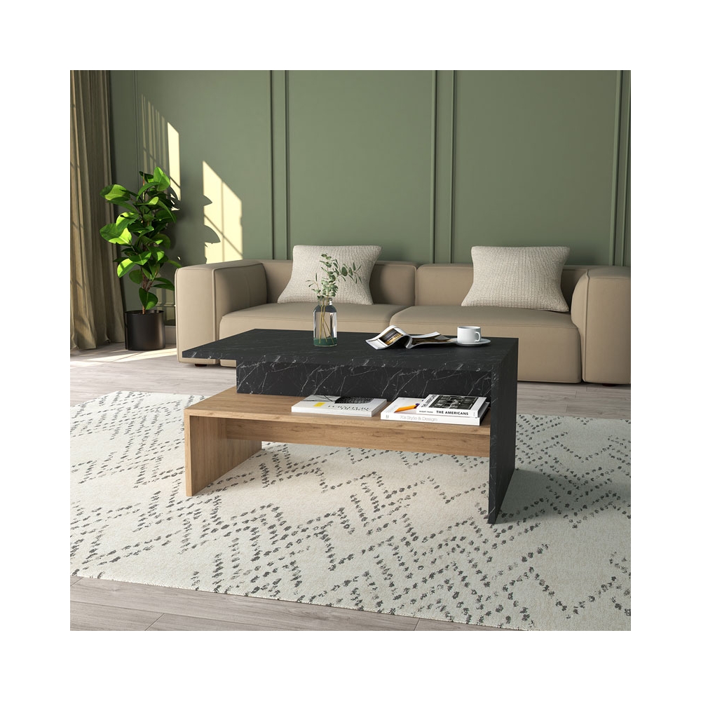 Τραπέζι σαλονιού Rihardo pakoworld μελαμίνης oak-μαύρο 90x56x42εκ Pakoworld 197-000186