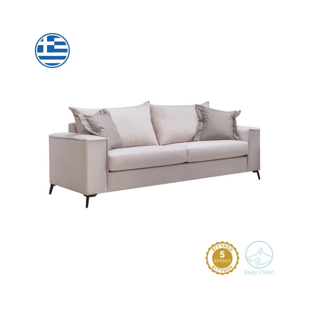 - Φέρει επένδυση υφάσματος Easy Clean (90% αδιάβροχο) εξαιρετικής ποιότητας και αντοχής. Όλα τα μαξιλάρια (πλάτης και έδρας) έχουν φερμουάρ και μπορούν να πληθούν στους 30 βαθμούς.