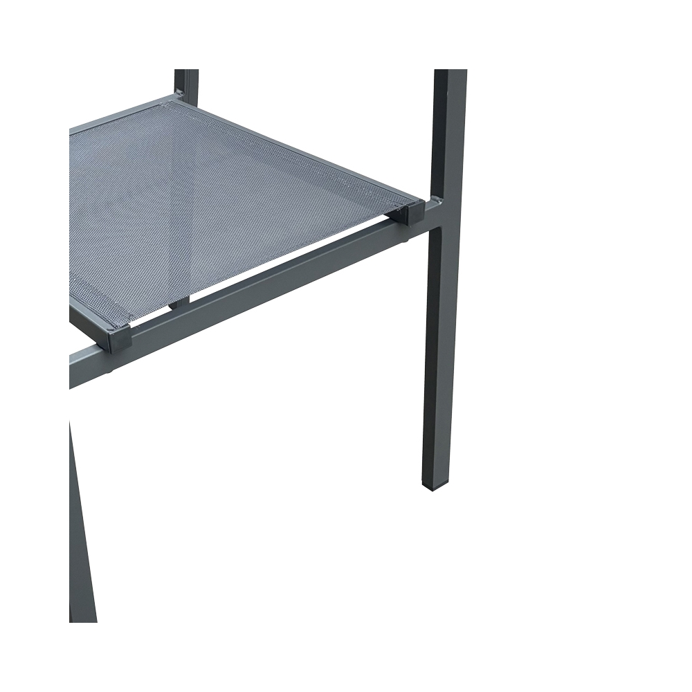 Τεχνικά χαρακτηριστικά: * Σταθερός σκελετός από υψηλής ποιότητας αλουμίνιο. Το αλουμίνιο είναι ένα υλικό που προσφέρει εξαιρετική αντοχή σε εξωτερικές συνθήκες. Έχει την ιδιότητα να μην σκουριάζει, να μην σαπίζει και να μην αποδυναμώνεται από την επίδραση του νερού, της υγρασίας ή των ακραίων θερμοκρασιών. * Επένδυση υφάσματος textinene. Το textilene είναι ύφασμα μεγάλης αντοχής στην ηλιακή ακτινοβολία UV και την υγρασία, ενώ παράλληλα αφήνει το δέρμα να "αναπνέει" δημιουργώντας έτσι άνεση στην έδραση. * Φέρει μπράτσα για την ξεκούραση των χεριών. * Προσφέρεται σε χρώμα ανθρακί