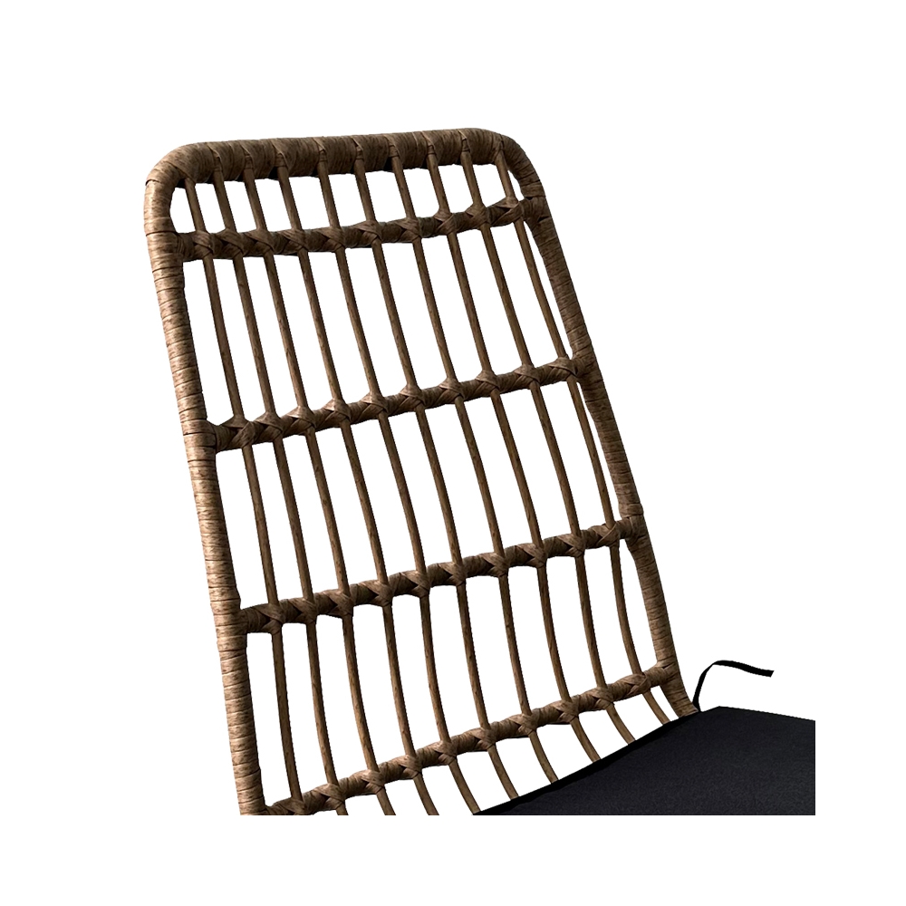 - Κυρίως επιφάνεια πολυθρόνας από PE rattan. Το PE rattan είναι ένα είδος οικολογικού συνθετικού rattan, ανακυκλώσιμο και με μεγαλύτερη ανθεκτικότητα σε σχέση με τα άλλα είδη.