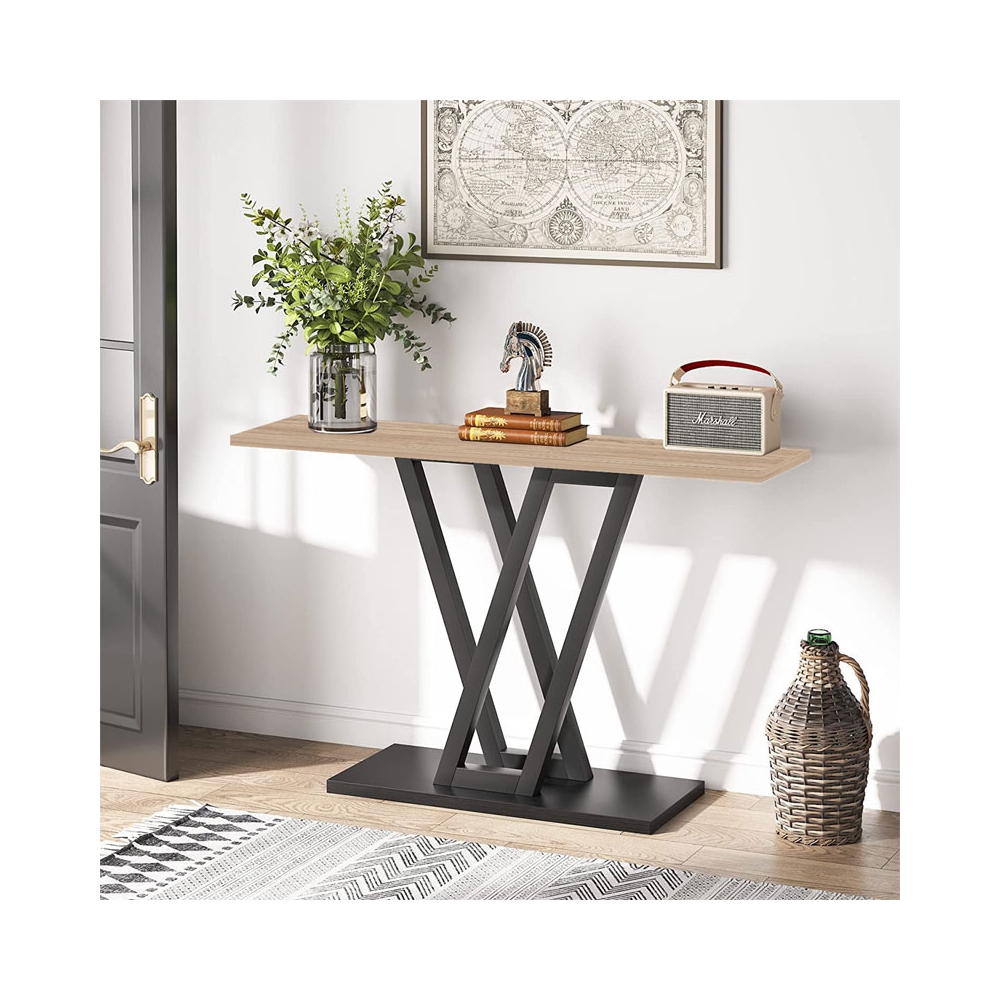 Κονσόλα Wirmo pakoworld φυσικό-μαύρο μελαμίνης-πόδι μαύρο μέταλλο 110x30x80εκ