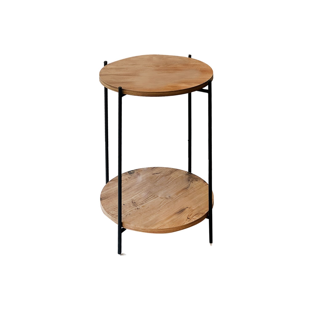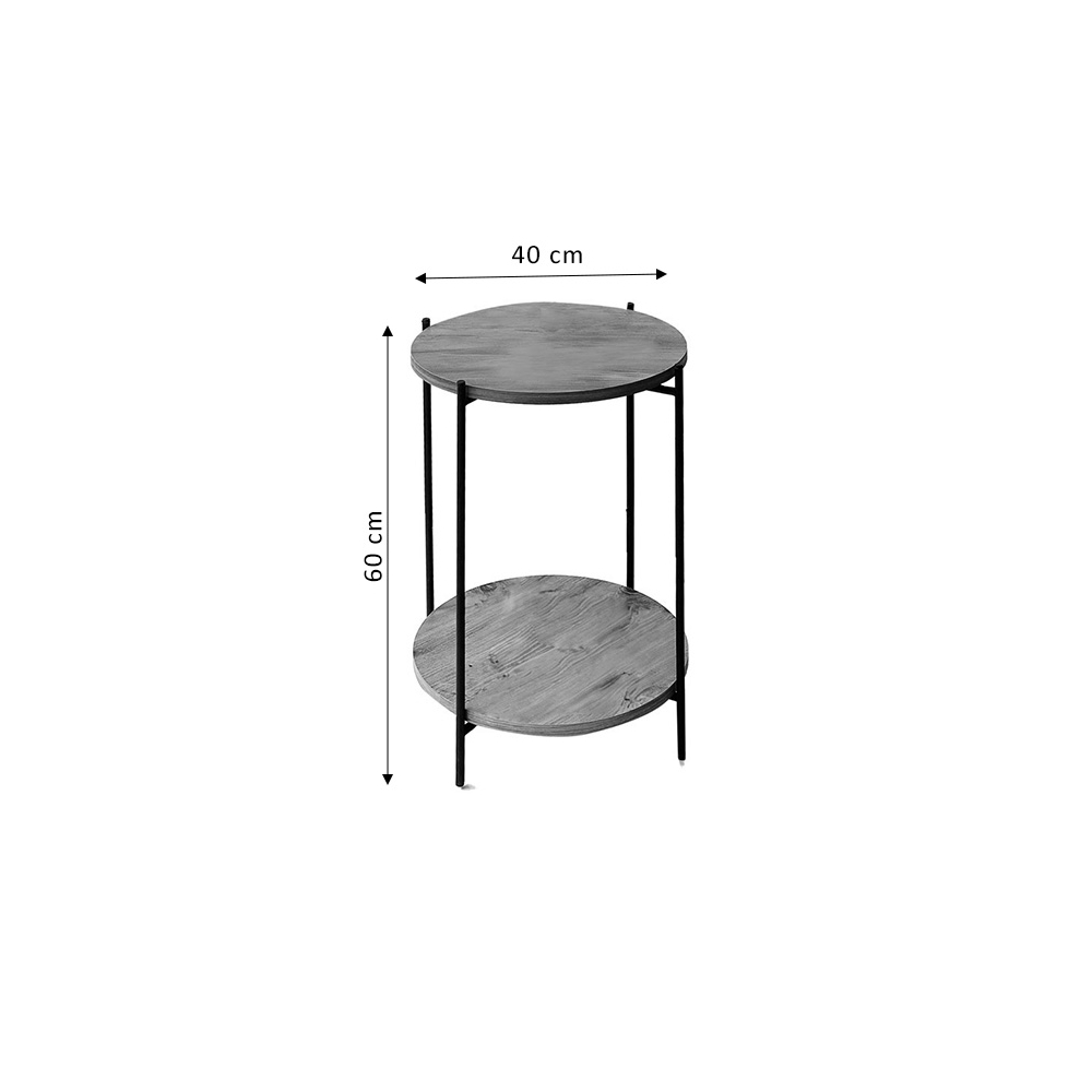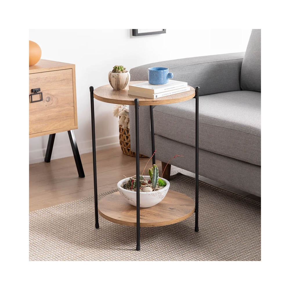 Τεχνικά χαρακτηριστικά: *Κατασκευασμένο από υψηλής ποιότητας μοριοσανίδα με επένδυση μελαμίνης σε oak χρώμα. * Στήριξη σε μεταλλικό σκελετό υψηλής αντοχής σε μαύρο χρώμα. * Διαθέτει δεύτερη βοηθητική επιφάνεια για μεγαλύτερη ανοιχτή αποθήκευση των αντικειμένων σας, δημιουργία διακοσμητικών συνθέσεων, στήριξη.