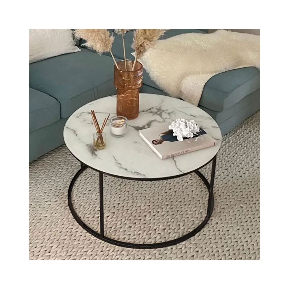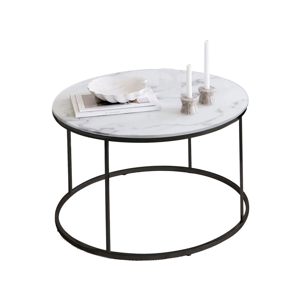 Τεχνικά χαρακτηριστικά: * Επιφάνεια κατασκευασμένη από μοριοσανίδα με επένδυση μελαμίνης υψηλής ποιότητας, με αντοχή στην καταπόνηση και στον χρόνο - σε λευκό μαρμάρου χρωματισμό. * Σκελετός κατασκεασμένος από μέταλλο σε μαύρο χρώμα υψηλής αντοχής.