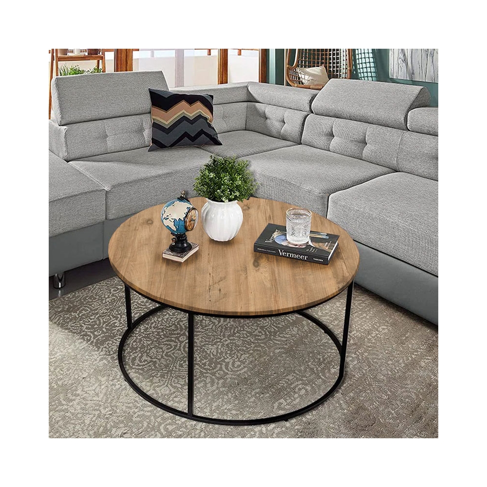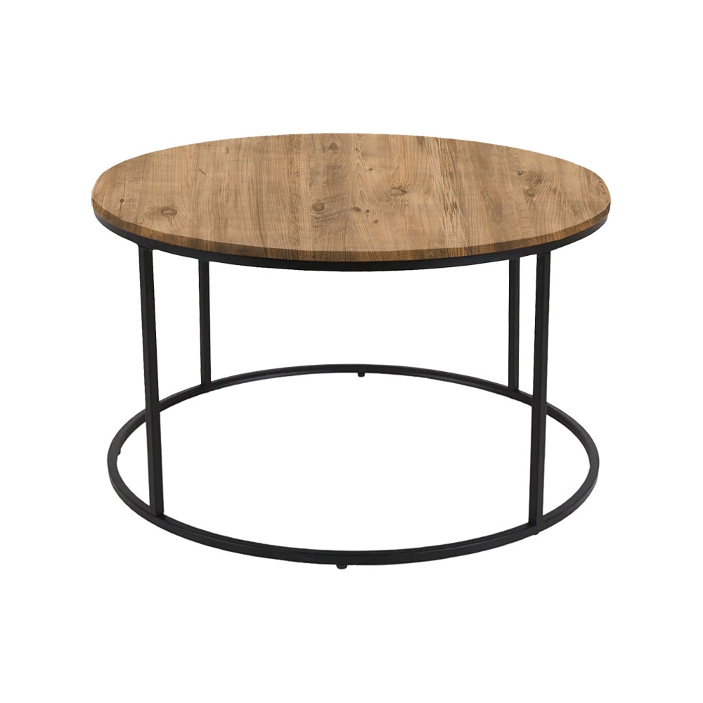 Τραπέζι σαλονιού Emilian pakoworld oak μελαμίνης-μαύρο μέταλλο Φ60x42εκ