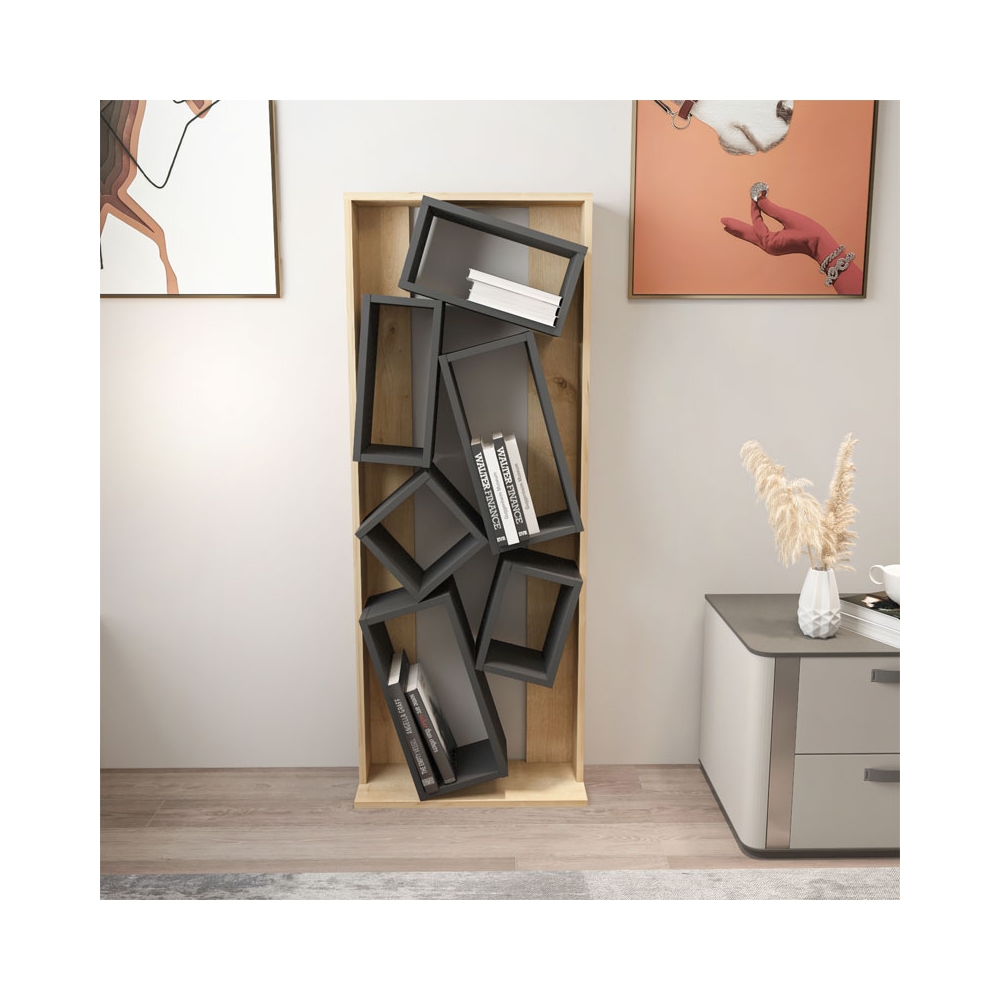 Βιβλιοθήκη Jamey pakoworld φυσικό-ανθρακί 60x24x153,6εκ Pakoworld 120-000395