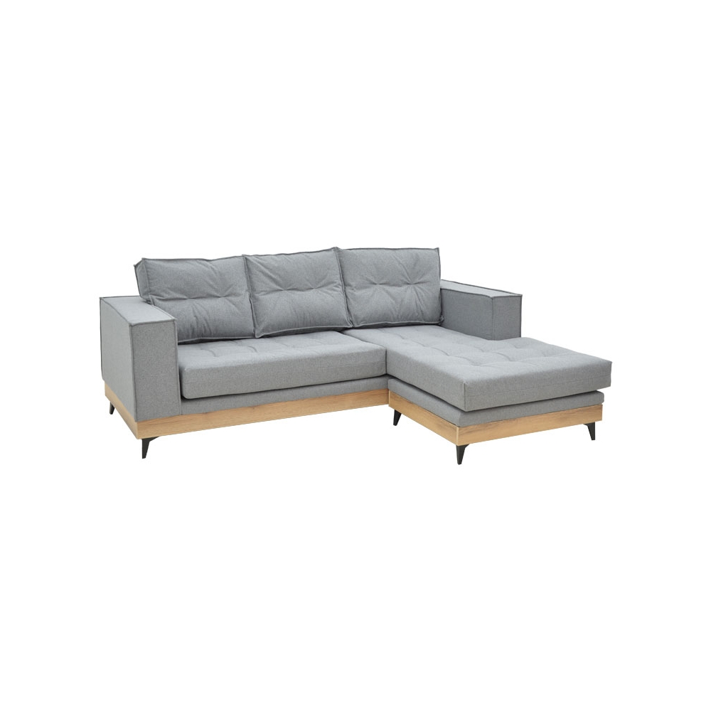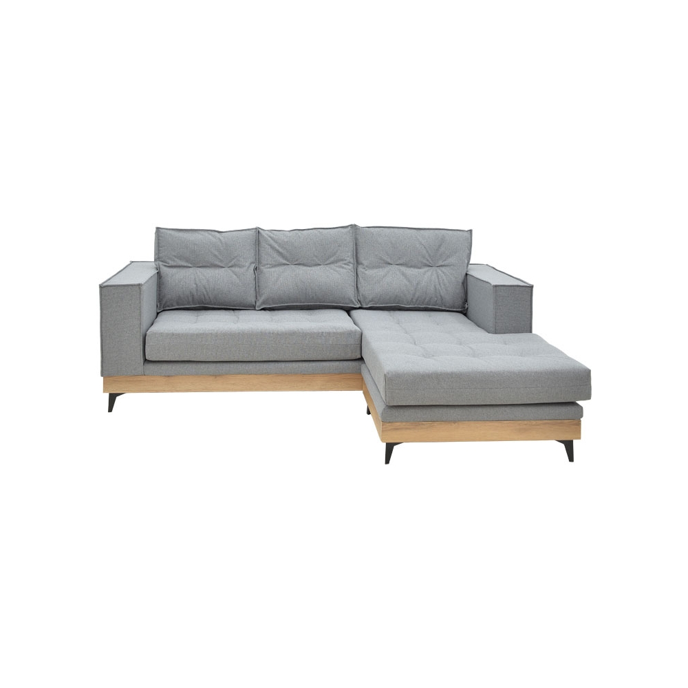 Γωνιακός καναπές αναστρέψιμος Mirabel pakoworld γκρι ύφασμα-φυσικό ξύλο 250x184x100εκ