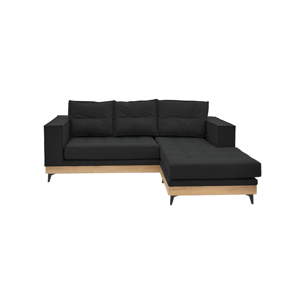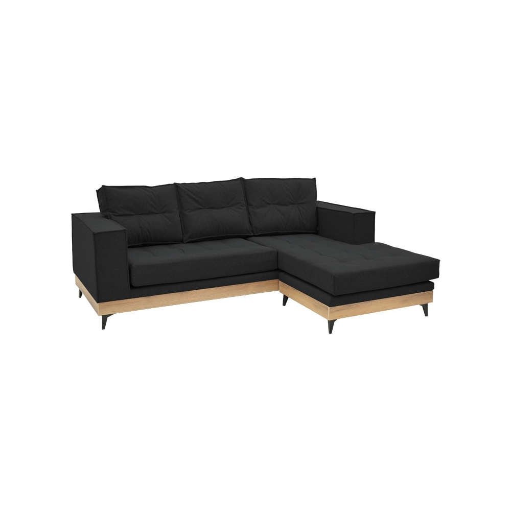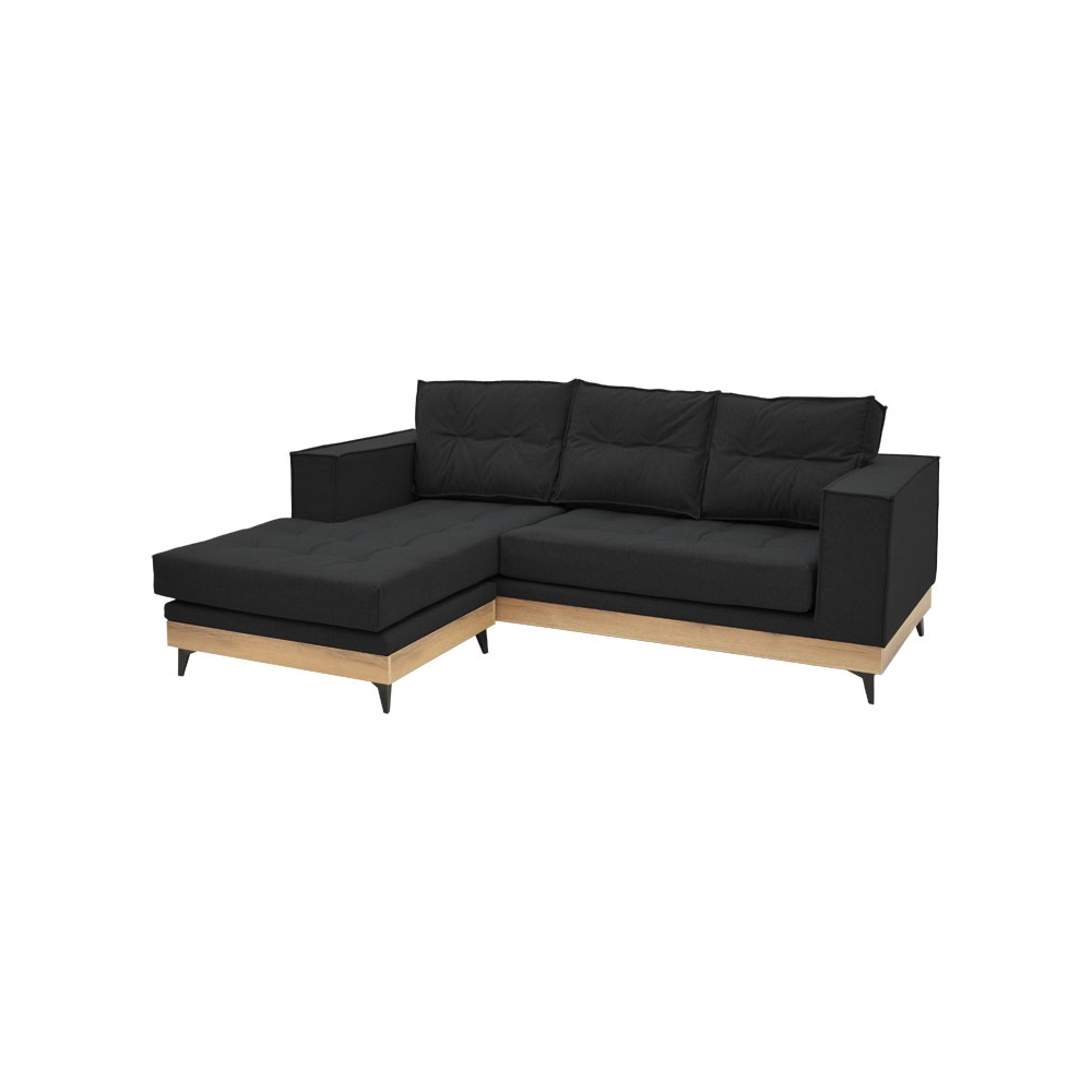 Γωνιακός καναπές αναστρέψιμος Mirabel pakoworld μαύρο ϋφασμα-ξύλο φυσικό 250x184x100εκ