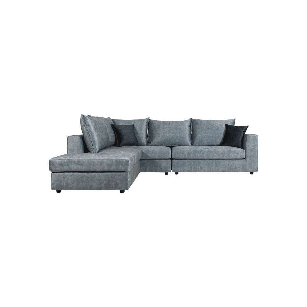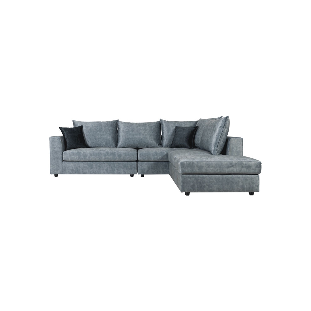 Τεχνικά χαρακτηριστικά: Κατασκευή από: - Σκελετό μοριοσανίδας, ξύλο λεύκας και επένδυση MDF + αφρολέξ - Μαξιλάρι καθίσματος αφρολέξ 400άρι plus, με διπλή βάτα ενισχυμένη με ελαστικές ίνες και μαξιλάρι πλάτης από 100% καθαρή σιλικόνη. - Ποδαρικό από υψηλής ποιότητας μέταλλο σε μαύρο χρώμα. - Φέρει επένδυση υφάσματος Easy Clean (90% αδιάβροχο) εξαιρετικής ποιότητας και αντοχής. Όλα τα μαξιλάρια (πλάτης και έδρας) έχουν φερμουάρ και μπορούν να πληθούν στους 30 βαθμούς. -Χρώμα καναπέ και μαξιλαριών πλάτης: γκρι αντικέ - Φέρει δύο διακοσμητικά μαξιλαράκια σε μπλε σκούρο χρώμα.