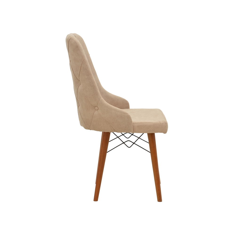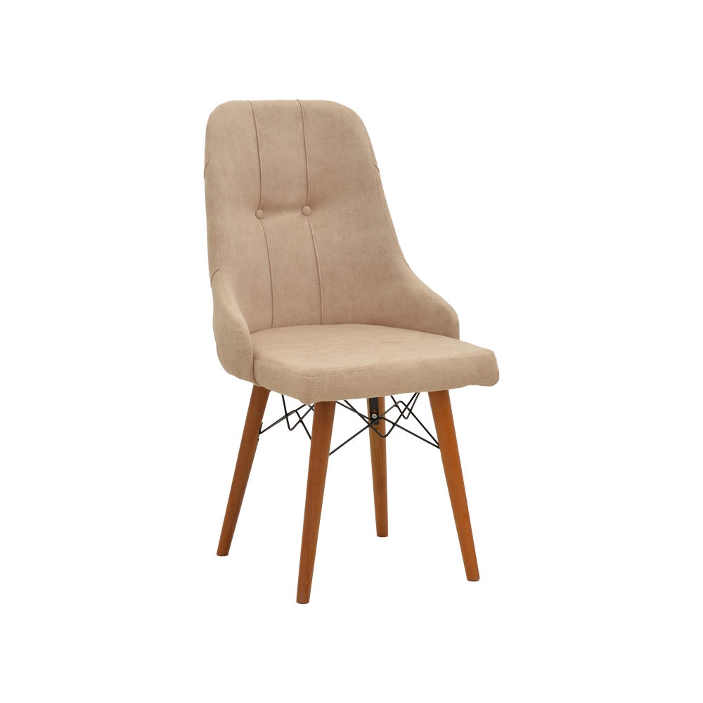 Τεχνικά χαρακτηριστικά: - Πλάτη και έδρα με ύφασμα αρίστης ποιότητας με μεγάλη ανθεκτικότητα και αντοχή στη φθορά σε μπεζ χρώμα. - Ο σχεδιασμός της ακολουθεί την σπονδυλική στήλη, στηρίζοντας τη μέση με την μοντέρνα μορφή της. - Στήριξη σε 4 ενισχυμένα ξύλινα πόδια καρυδί χρώματος, ενοποιημένα με μεταλλικούς μαύρους βραχίονες, εξαιρετικής ποιότητας και αντοχής, τόσο στο βάρος όσο και στο χρόνο.
