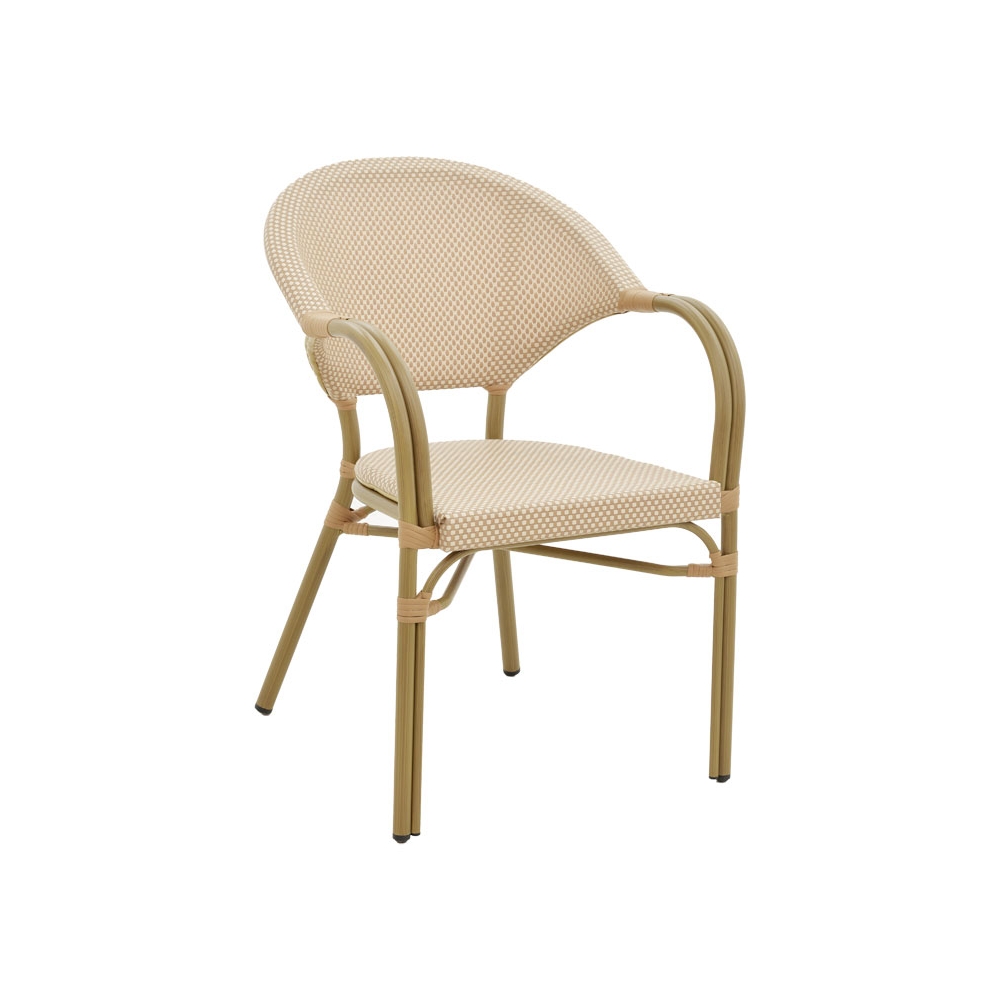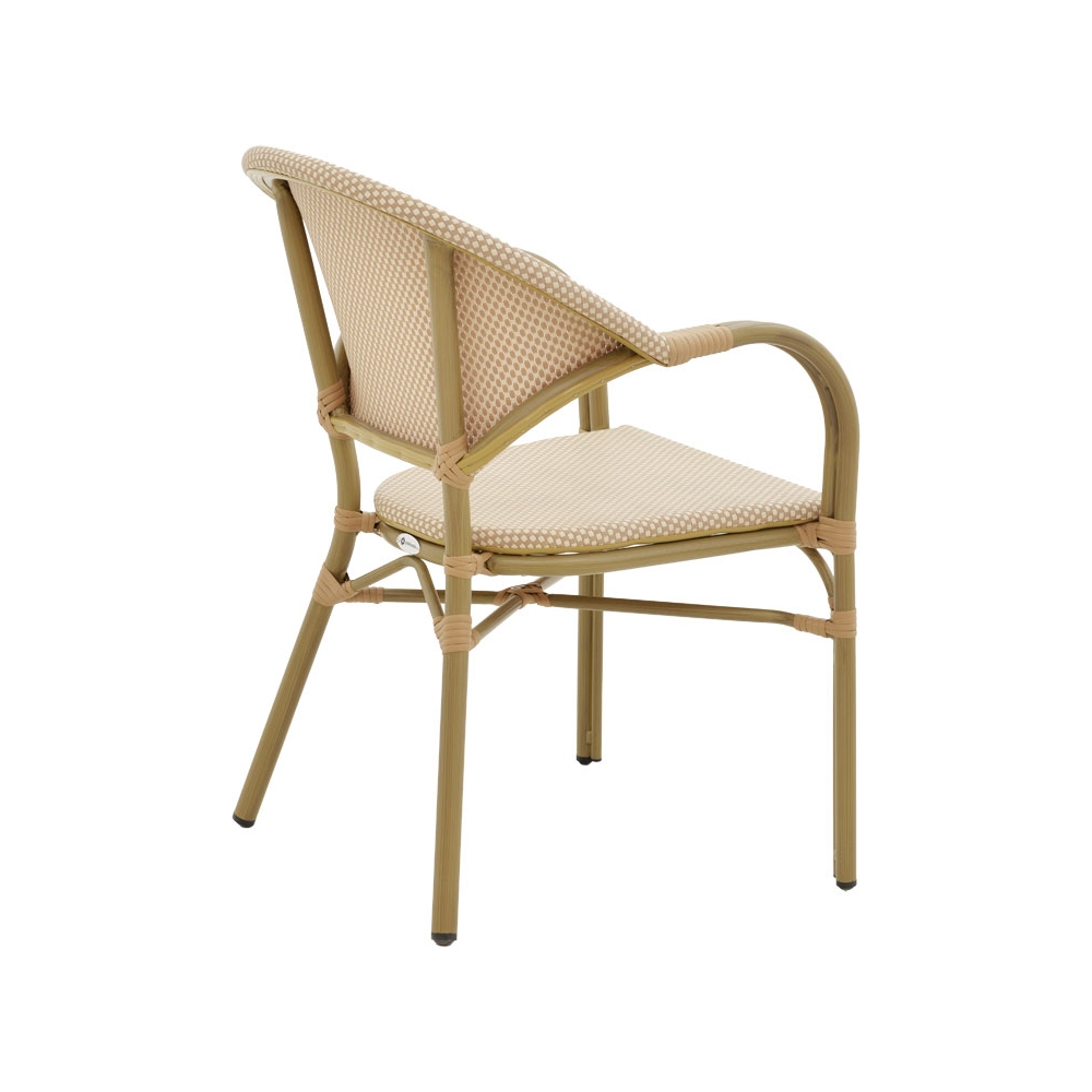 * Επένδυση καθίσματος με εξαιρετικής ποιότητας ύφασμα textilene. Το textilene είναι πλενόμενο και ανθεκτικό στις συνθήκες του εξωτερικού πέριβάλλοντος (ηλιακή ακτινοβολία, υγρασία).