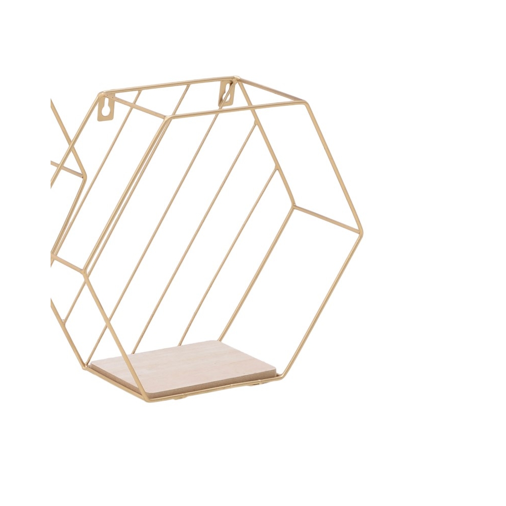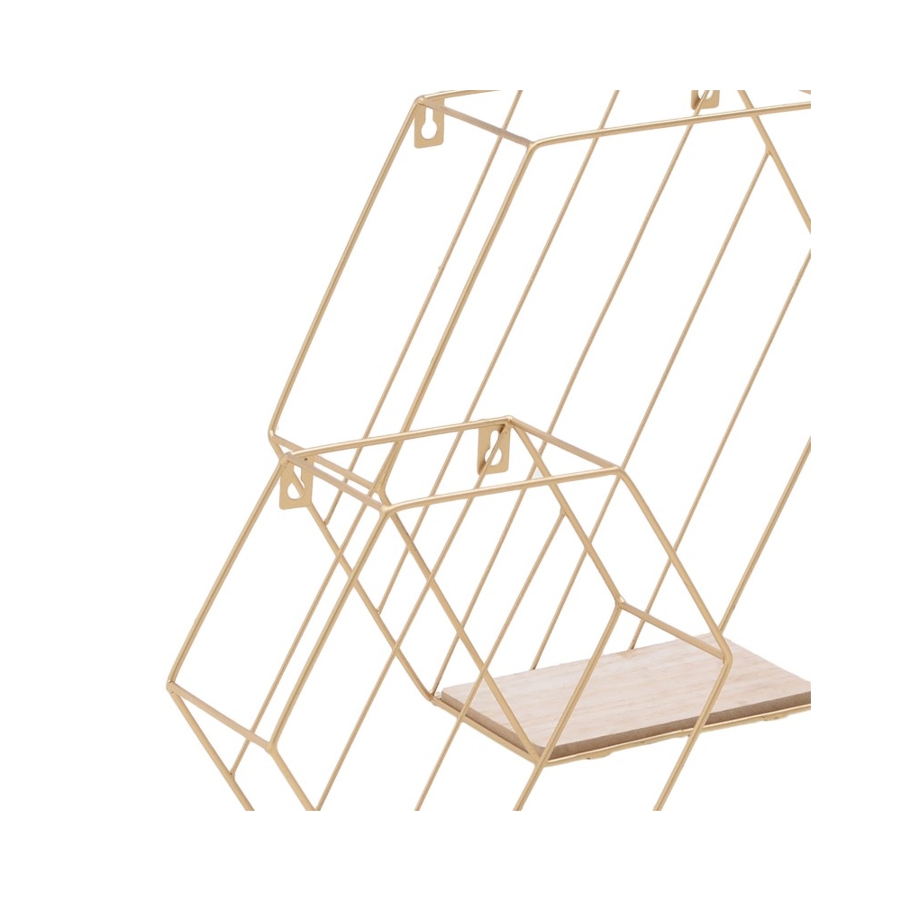 Πρόκειται για ένα εκλεπτυσμένο και λειτουργικό κομμάτι διακόσμησης για το σπίτι σας. Το χρυσό-φυσικό χρώμα δημιουργεί έναν αναλλοίωτο συνδυασμό πολυτέλειας και φυσικής ζεστασιάς. Το χρυσό προσθέτει λάμψη και πολυτέλεια, ενώ το φυσικό ξύλο προσδίδει φυσική αίσθηση και ζεστασιά στον χώρο. Η ραφιέρα είναι κατασκευασμένη από ανθεκτικό μέταλλο και ξύλο, προσφέροντας αξιόπιστη σταθερότητα και αντοχή. Ο συνδυασμός των υλικών προσφέρει ένα μοντέρνο και εκλεπτυσμένο αποτέλεσμα που μπορεί να ενσωματωθεί εύκολα σε ποικίλα διακοσμητικά στυλ.