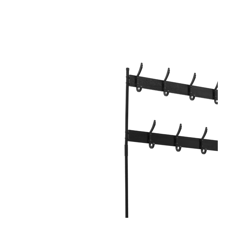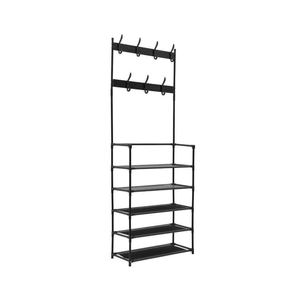 Η συνδυασμένη λειτουργικότητα της κρεμάστρας και της παπουτσοθήκης επιτρέπει την εξοικονόμηση χώρου και την οργάνωση των παπουτσιών σας με άνεση. Επιπλέον, η κρεμάστρα μπορεί να χρησιμοποιηθεί για την αποθήκευση σκουφιών, κασκόλ, ή οποιουδήποτε άλλου αξεσουάρ που θέλετε να κρεμάσετε.