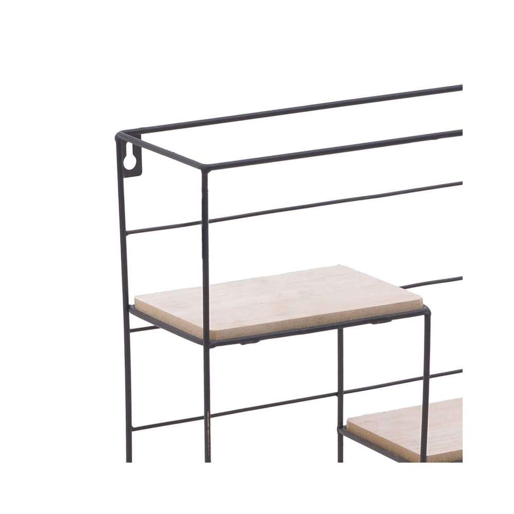 Πρόκειται για ένα εκλεπτυσμένο και λειτουργικό κομμάτι διακόσμησης για το σπίτι σας. Το μαύρο-φυσικό χρώμα δημιουργεί έναν αναλλοίωτο συνδυασμό φυσικής ζεστασιάς. Η ραφιέρα είναι κατασκευασμένη από ανθεκτικό μέταλλο και ξύλο, προσφέροντας αξιόπιστη σταθερότητα και αντοχή. Ο συνδυασμός των υλικών προσφέρει ένα μοντέρνο και εκλεπτυσμένο αποτέλεσμα που μπορεί να ενσωματωθεί εύκολα σε ποικίλα διακοσμητικά στυλ.