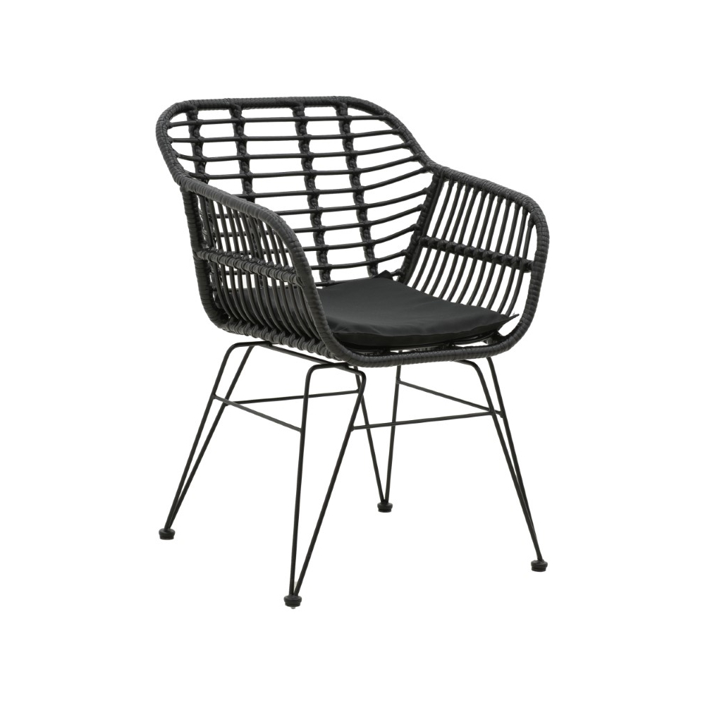 Πολυθρόνα κήπου Naoki pakoworld με μαξιλάρι pe μαύρο-μέταλλο μαύρο πόδι 55x58x79εκ