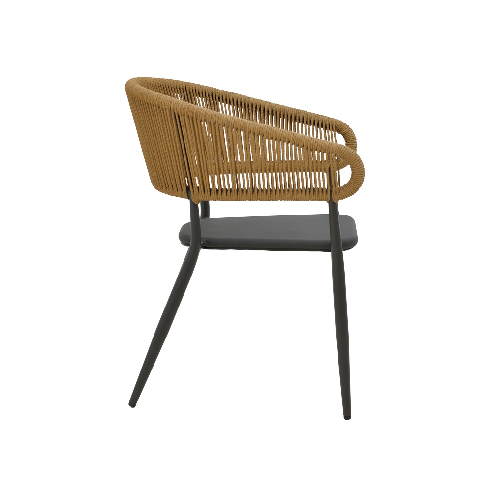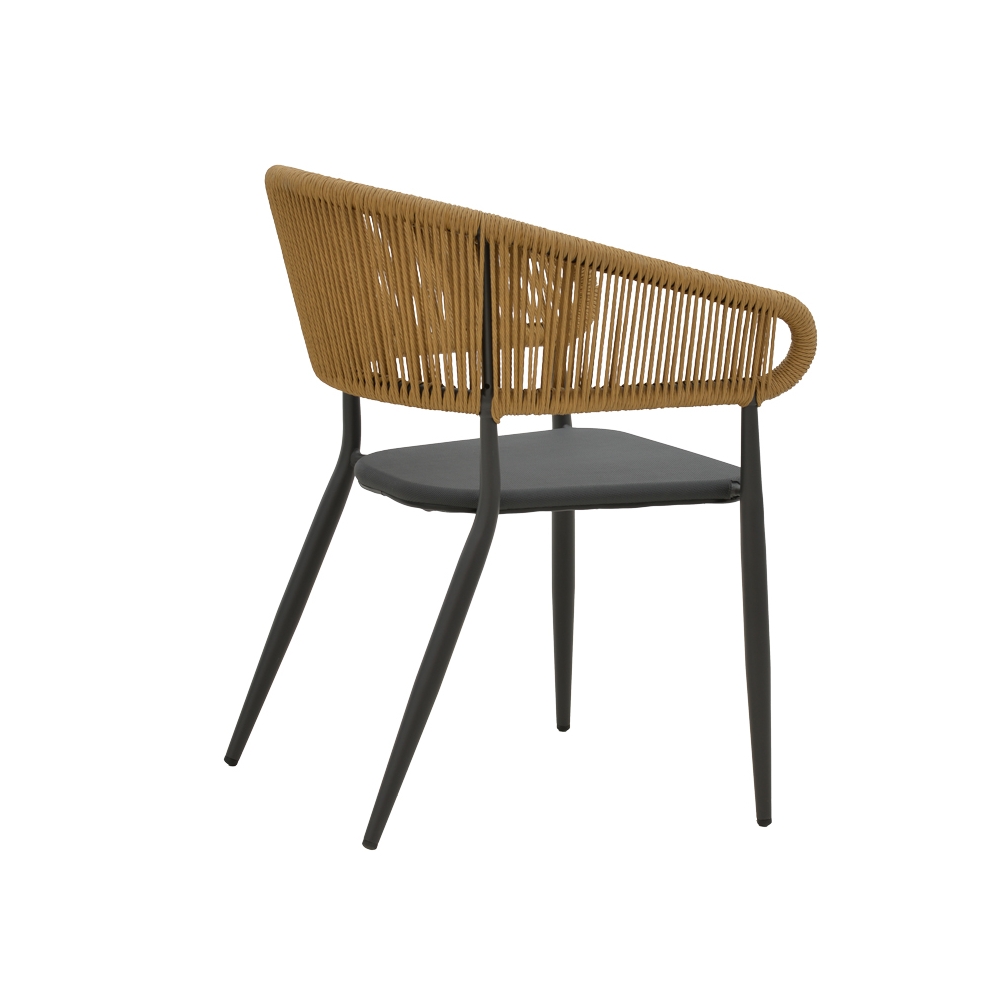 Τεχνικά χαρακτηριστικά: * Κατασκευή από αλουμίνιο και ρατάν εξαιρετικής ποιότητας που προσφέρουν αντοχή σε φθορά και χρόνο. Το ράταν είναι ένα είδος φυτικού υλικού που προέρχεται από τον στέλεχος του φυτού Rattan, το οποίο ανήκει στην οικογένεια των Palm. Η κύρια ιδιότητα του ράταν είναι η ευελιξία του, καθώς μπορεί να πλεκτεί και να διαμορφωθεί εύκολα. Επίσης, είναι ανθεκτικό και αντέχει στις καιρικές συνθήκες, καθιστώντας το ιδανικό για επιπλέον εξωτερικούς χώρους. * Το αλουμίνιο δημιουργεί ένα προστατευτικό οξειδωτικό στρώμα όταν έρχεται σε επαφή με τον αέρα, προστατεύοντας από τη διάβρωση, ενώ παράλληλα είναι πλήρως ανακυκλώσιμο χωρίς να χάσει τις ιδιότητές του, κάνοντάς το ένα πολύ βιώσιμο υλικό. * Έδρα κατασκευασμένη από textilene. Το textilene είναι ένα εξαιρετικά ανθεκτικό υλικό που χρησιμοποιείται ευρέως σε επίπλωση εξωτερικών χώρων και εξαρτήματα. Αποτελείται από πολυεστερικές ινώδεις που επικαλύπτονται με PVC (πολυβινυλοχλωρίδιο), δημιουργώντας ένα υλικό που συνδυάζει ανθεκτικότητα, αντοχή στις καιρικές συνθήκες και εύκαμπτη υφή. Το υλικό αυτό επιτρέπει τη διέλευση του αέρα, βοηθώντας στη διατήρηση μιας δροσερής αίσθησης κατά τη χρήση. * Οι καταλήξεις των ποδιών φέρουν ειδικά προστατευτικά καλύμματα. * Προσφέρεται σε χρώμα φυσικό-ανθρακί.
