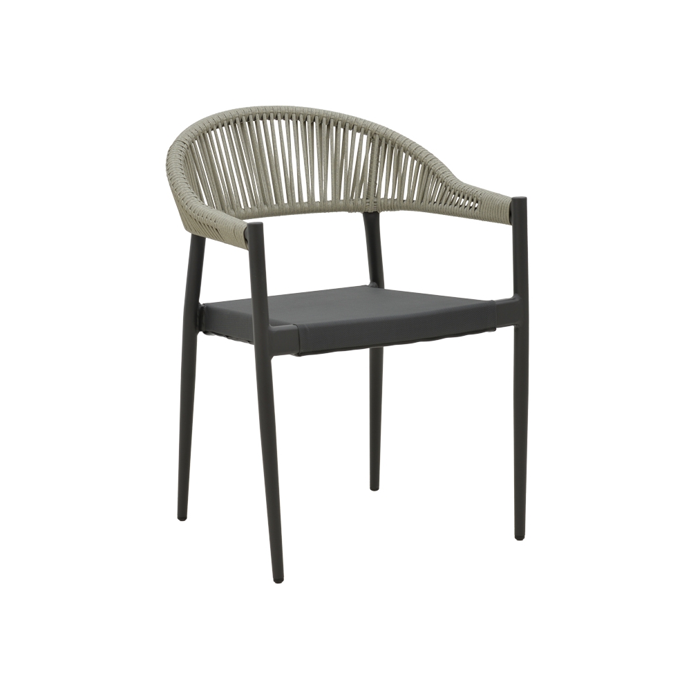 Τεχνικά χαρακτηριστικά: * Σταθερός σκελετός από εξαιρετικής ποιότητας αλουμίνιο με αντοχή στην καταπόνηση και στη φθορά. * Κυρίως σώμα καρέκλας από εξαιρετικής ποιότητας mesh ύφασμα και ρατάν. Η κύρια ιδιότητα του ράταν είναι η ευελιξία του, καθώς μπορεί να πλεκτεί και να διαμορφωθεί εύκολα. Επίσης, είναι ανθεκτικό και αντέχει στις καιρικές συνθήκες, καθιστώντας το ιδανικό για επιπλέον εξωτερικούς χώρους. Το ύφασμα mesh είναι ένας τύπος υφάσματος που χαρακτηρίζεται από την άνοιγμά του, δηλαδή την ύπαρξη μικρών οπών ή δικτυών που επιτρέπουν τη διέλευση αέρα και φωτός. * Το αλουμίνιο δημιουργεί ένα προστατευτικό οξειδωτικό στρώμα όταν έρχεται σε επαφή με τον αέρα, προστατεύοντας από τη διάβρωση, ενώ παράλληλα είναι πλήρως ανακυκλώσιμο χωρίς να χάσει τις ιδιότητές του, κάνοντάς το ένα πολύ βιώσιμο υλικό. * Έδρα κατασκευασμένη από textilene. Το textilene είναι ένα εξαιρετικά ανθεκτικό υλικό που χρησιμοποιείται ευρέως σε επίπλωση εξωτερικών χώρων και εξαρτήματα. Αποτελείται από πολυεστερικές ινώδεις που επικαλύπτονται με PVC (πολυβινυλοχλωρίδιο), δημιουργώντας ένα υλικό που συνδυάζει ανθεκτικότητα, αντοχή στις καιρικές συνθήκες και εύκαμπτη υφή. Το υλικό αυτό επιτρέπει τη διέλευση του αέρα, βοηθώντας στη διατήρηση μιας δροσερής αίσθησης κατά τη χρήση. * Oι καταλήξεις των ποδιών φέρουν προστατευτικά καλύμματα. * Προσφέρεται σε χρώμα ανθρακί.