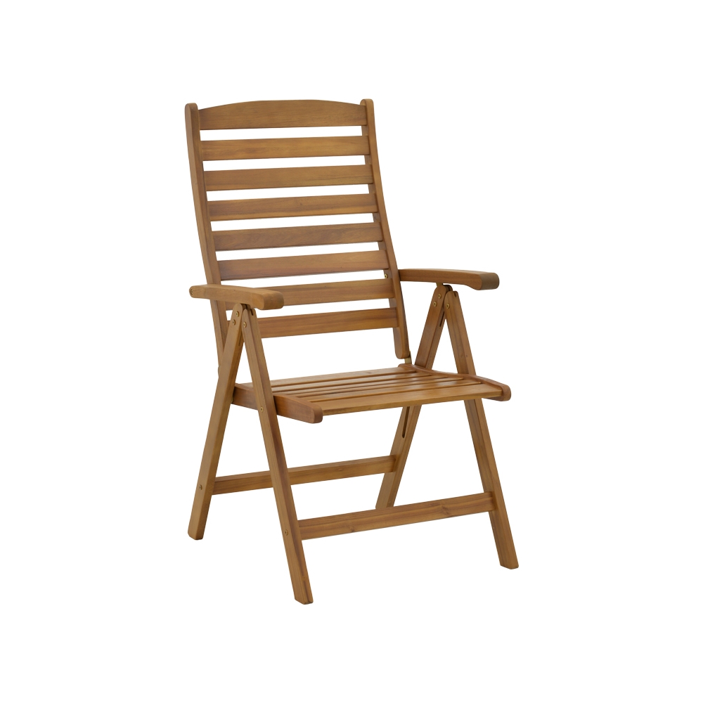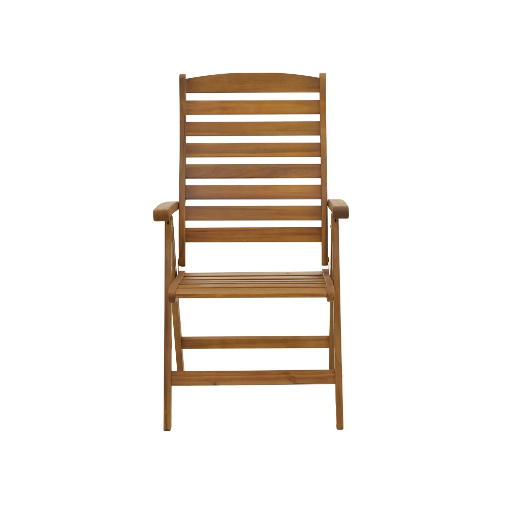 Τεχνικά χαρακτηριστικά: * Κατασκευή από ξύλο ακακίας. Η ακακία είναι γνωστή για την αντοχή της και την ιδιαίτερη αισθητική της, κάνοντας τον σκελετό αυτόν ιδανικό για χρήση σε εξωτερικούς χώρους, όπως κήπους, βεράντες ή αυλές. Τα λεία φυσικά ξύλινα φινιρίσματα του αναδεικνύουν τις φυσικές γραμμές και την υφή του ξύλου, προσφέροντας μια αίσθηση αυθεντικότητας και ευχάριστης απλότητας. * Πτυσσόμενο κάθισμα: Η καρέκλα αναδιπλώνει και κλείνει με μία κίνηση προσφέροντας έτσι ευκολία στη μεταφορά και την αποθήκευση. *Διαθέτει πέντε θέσεις ανάκλισης. * Φέρει μπράτσα για την ξεκούραση των χεριών. * Προσφέρεται σε χρώμα φυσικό.