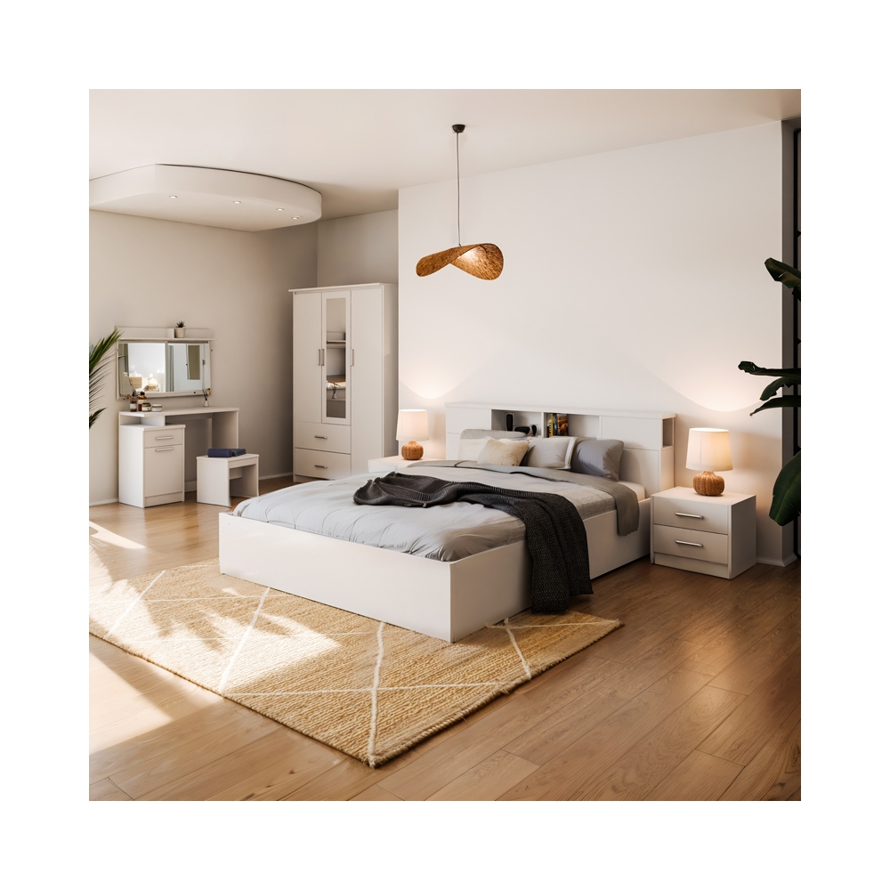 - Σκελετός κατασκευασμένος από μοριοσανίδα με επένδυση paper wood υψηλής ποιότητας, με αντοχή στην καταπόνηση, την φθορά και τον χρόνο. Προσφέρεται σε λευκό χρώμα.